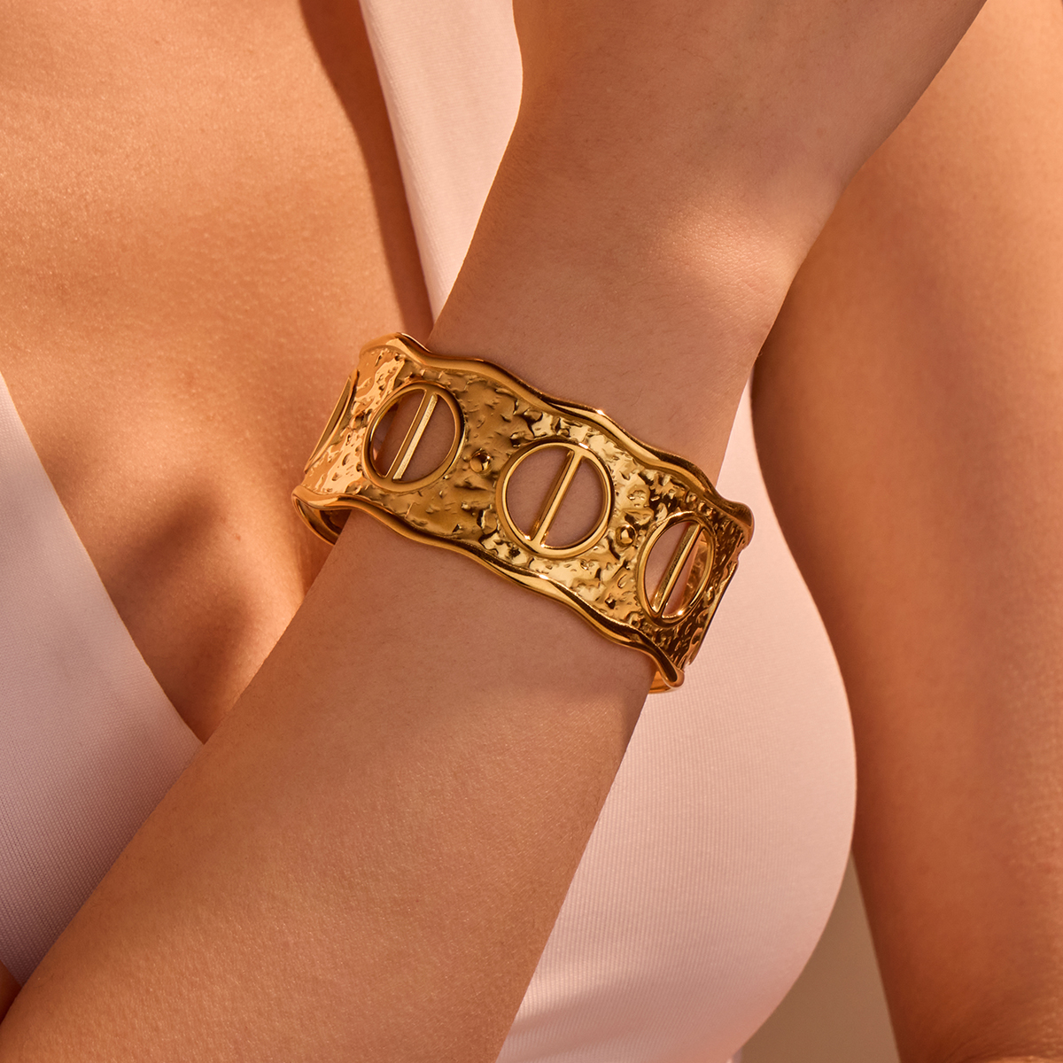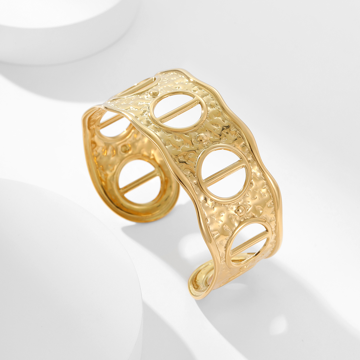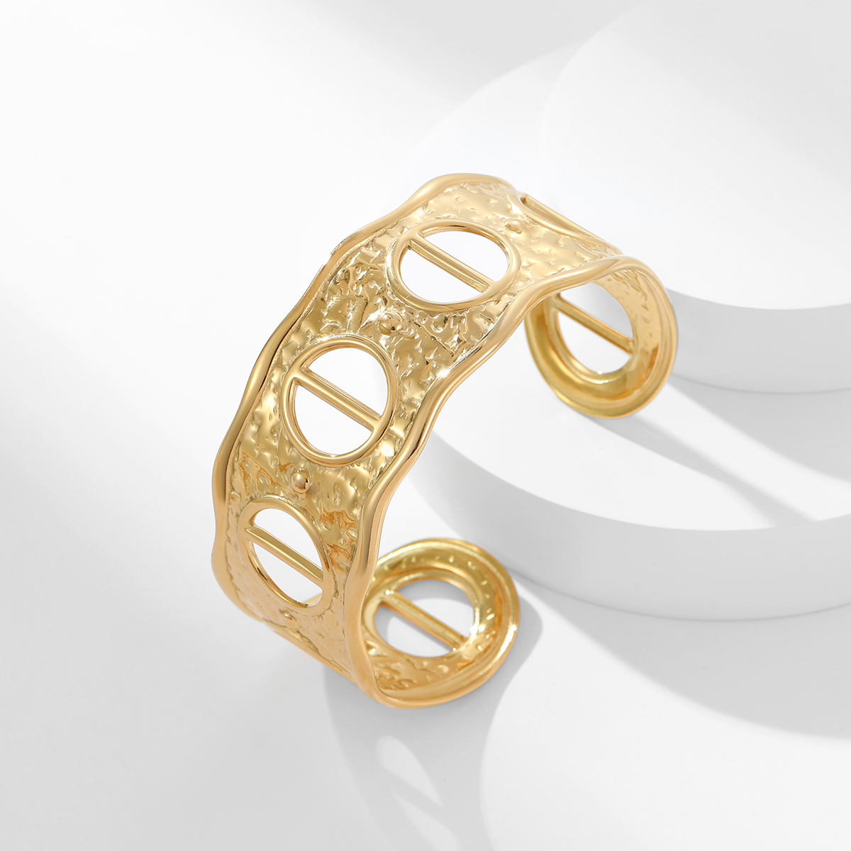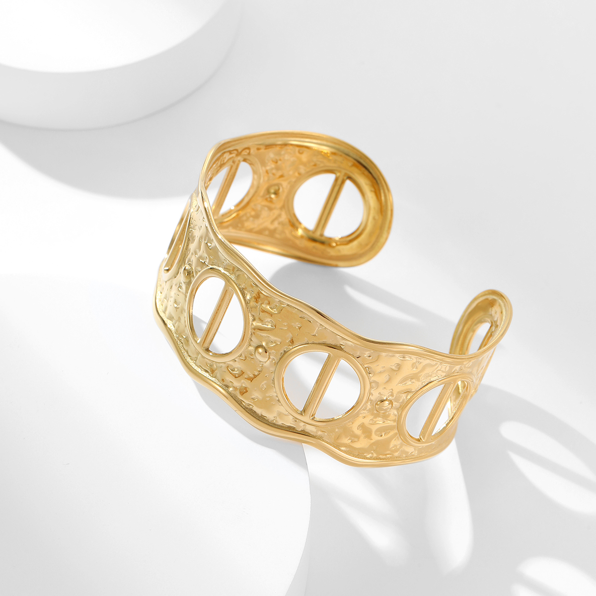 高端18KPVD镀金C形镂空袖口手镯