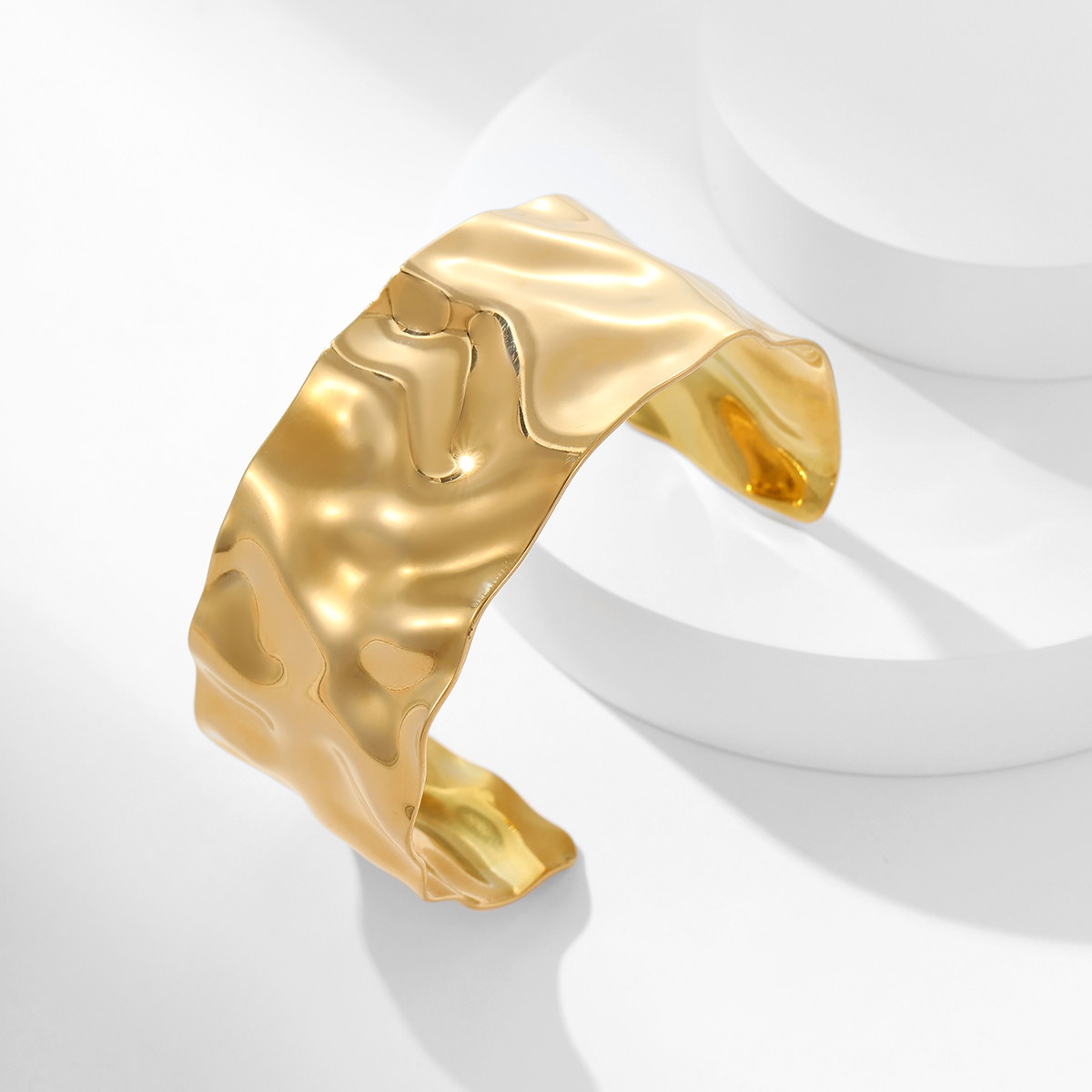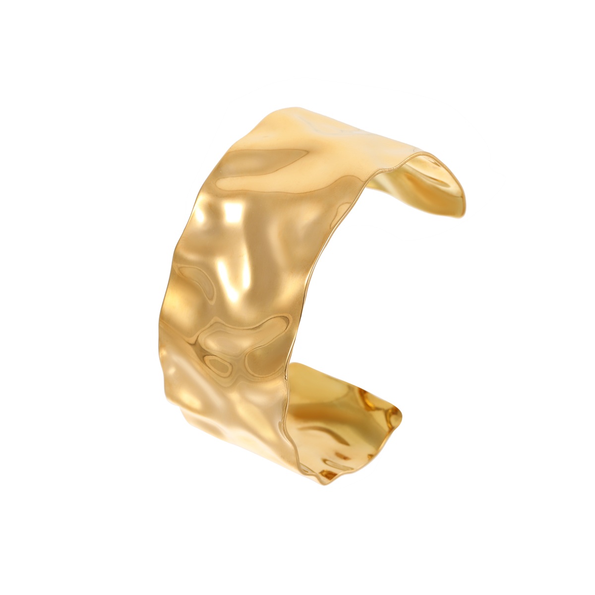 "夸张不锈钢18K镀金锤纹宽手镯"