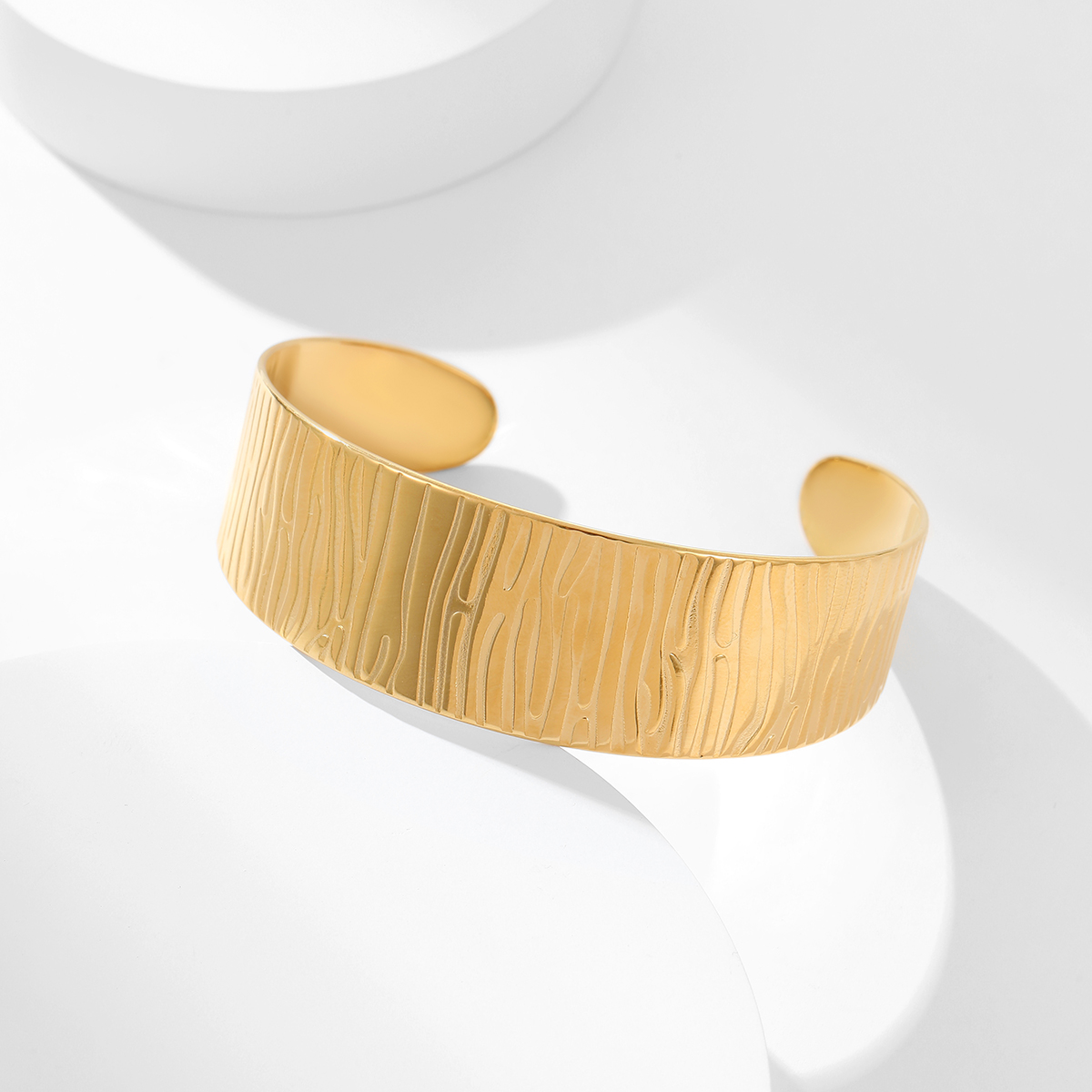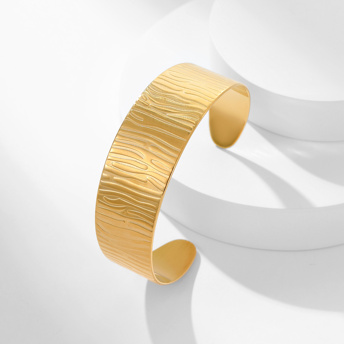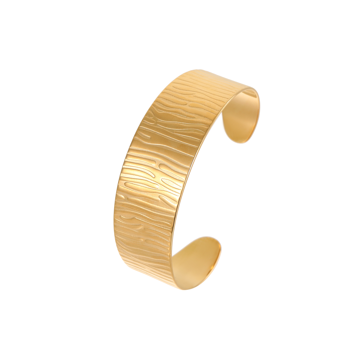 不锈钢开口18K镀金锤纹宽手镯