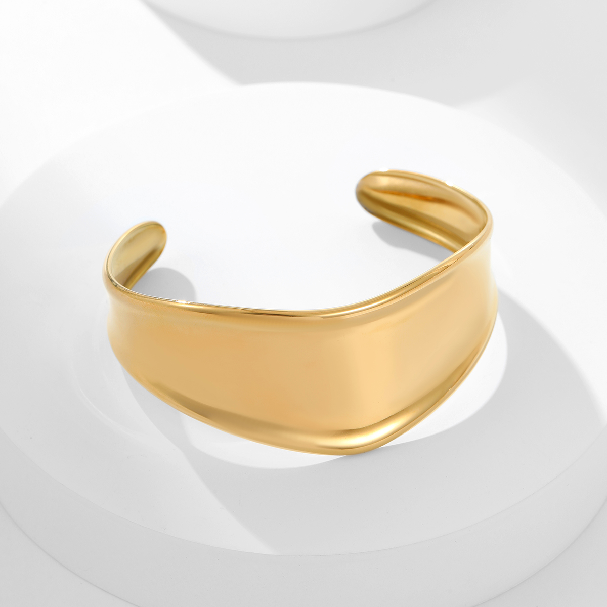 "时尚经典款18K镀金不锈钢粗款开口手镯"