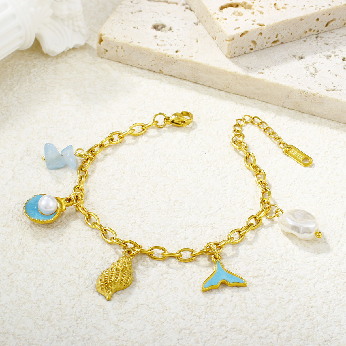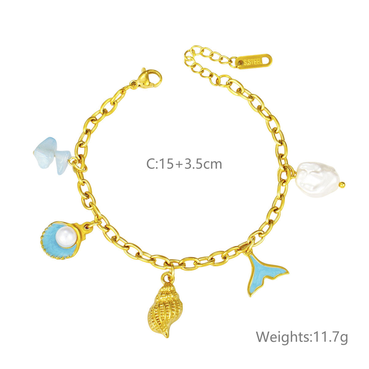 "波西米亚风金色海龟海星贝壳吊坠手链"