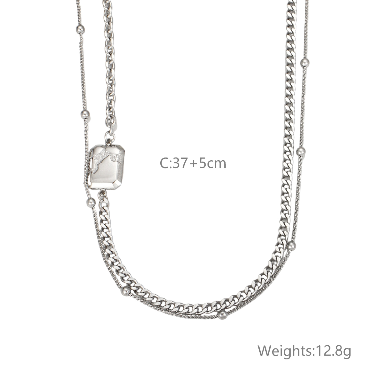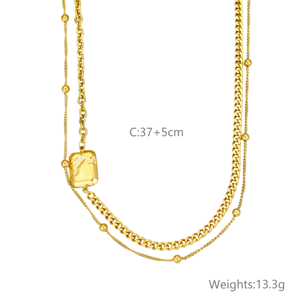 18K镀金不锈钢首饰复古双层链方形吊坠