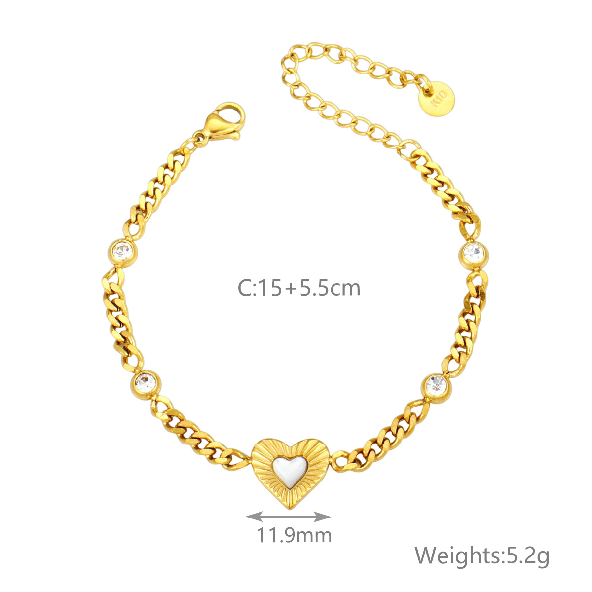 "批发镂空心形手链 18k镀金不锈钢桃心女士珠宝"