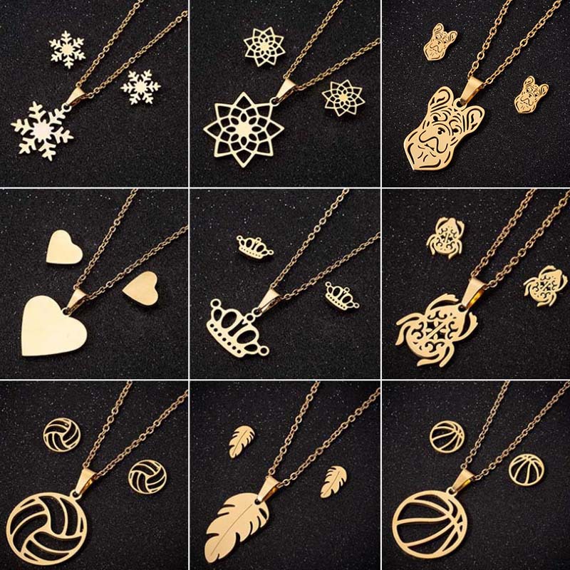 心形四叶花镀18K金色镶钻项链做饰品的工厂