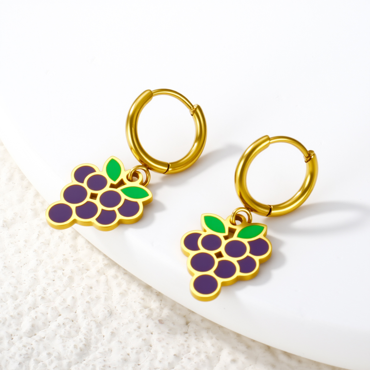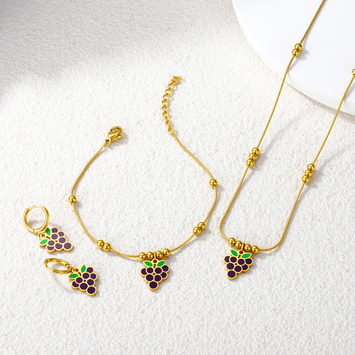 时尚彩色镀金紫色葡萄项链耳环套装