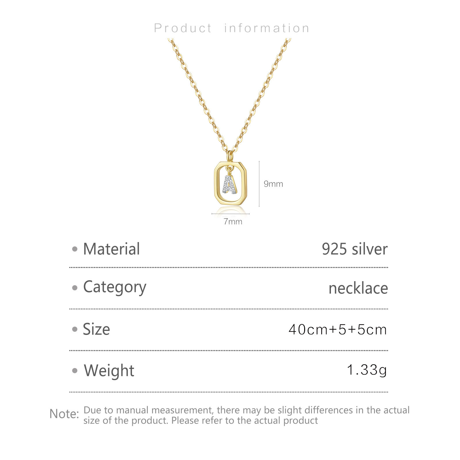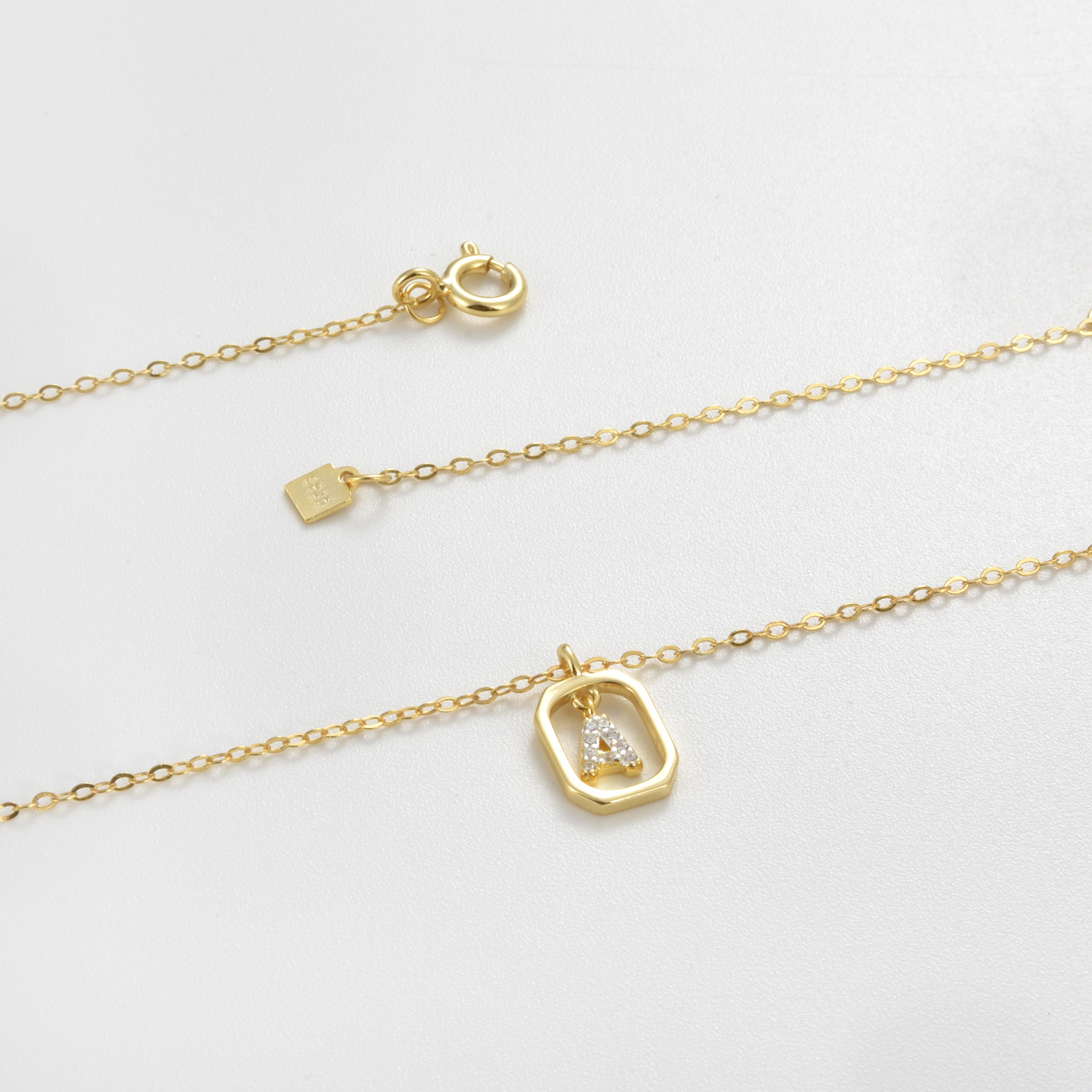 "925 纯银长方形锆石字母项链"