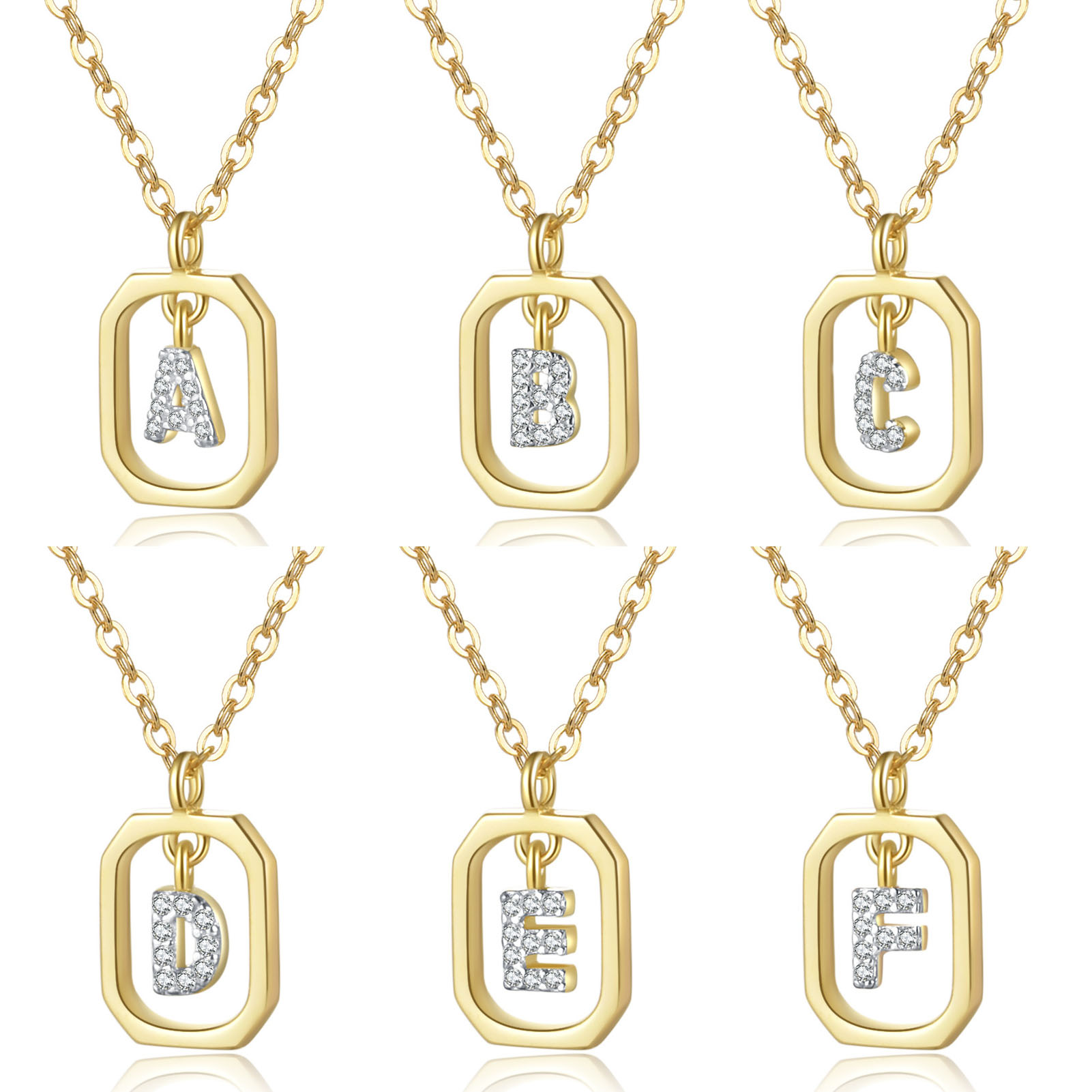 925 纯银长方形锆石字母项链