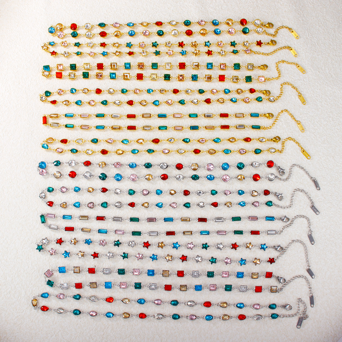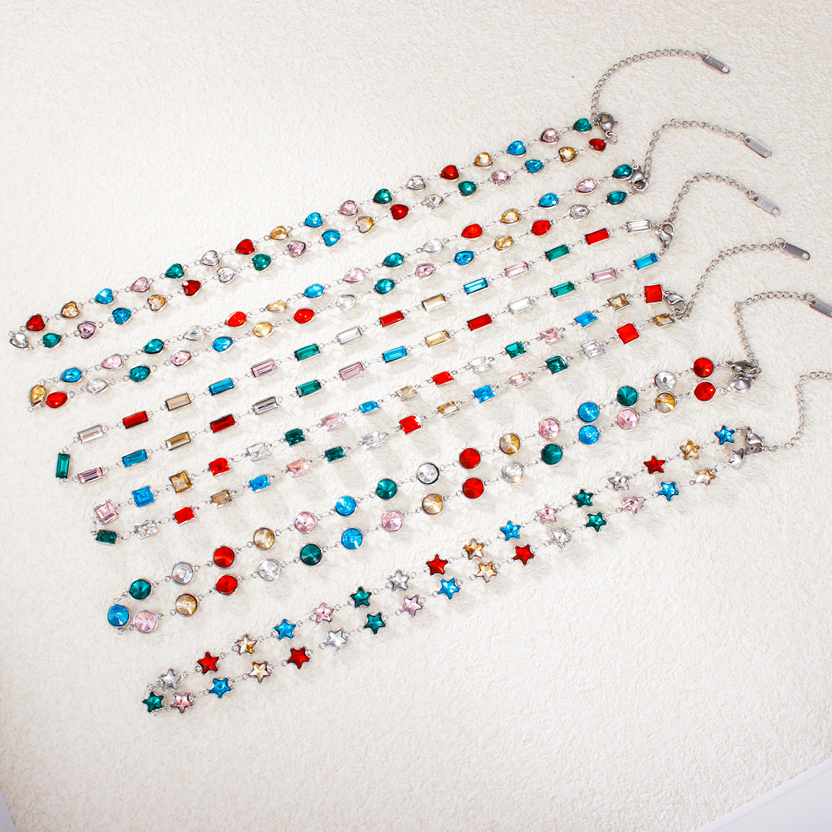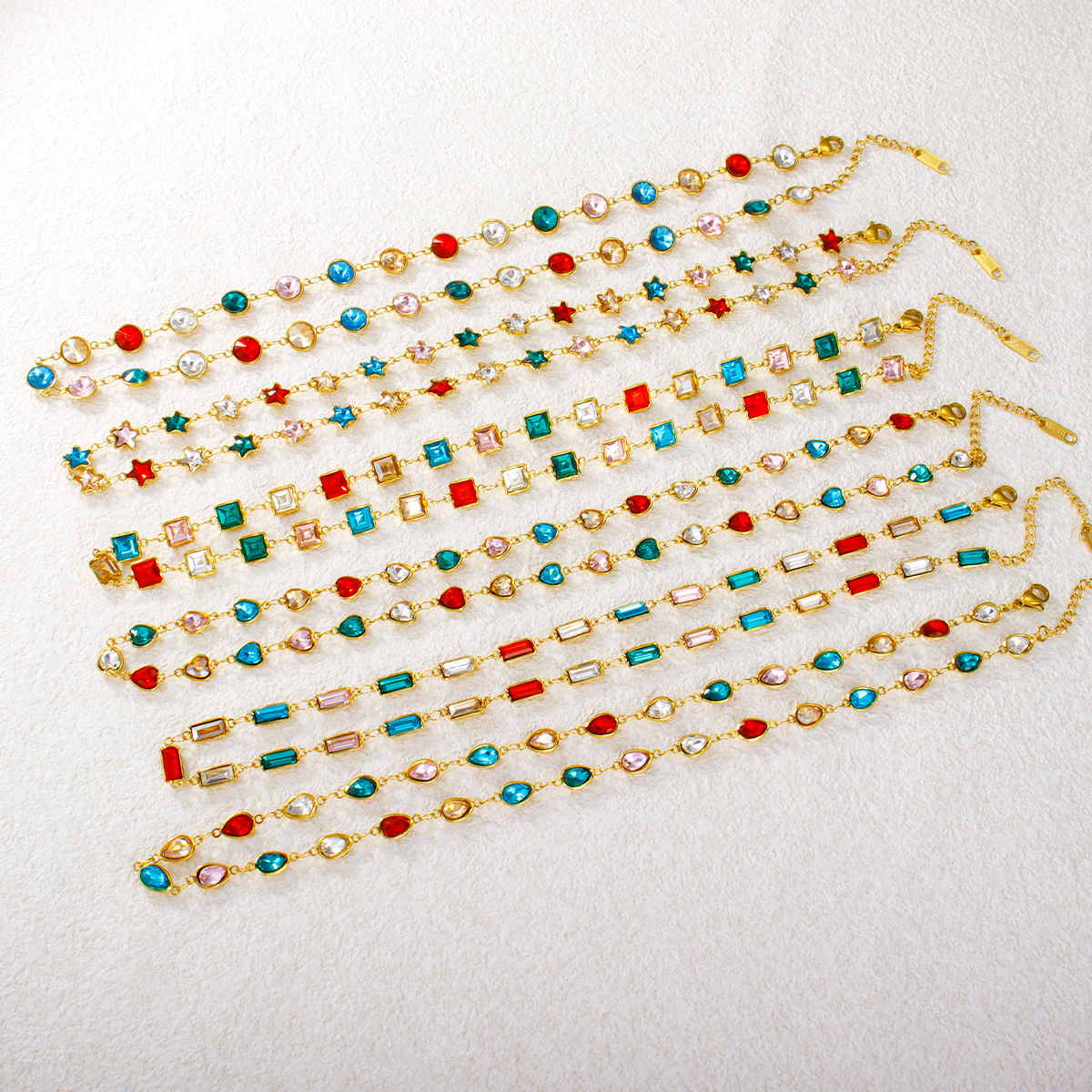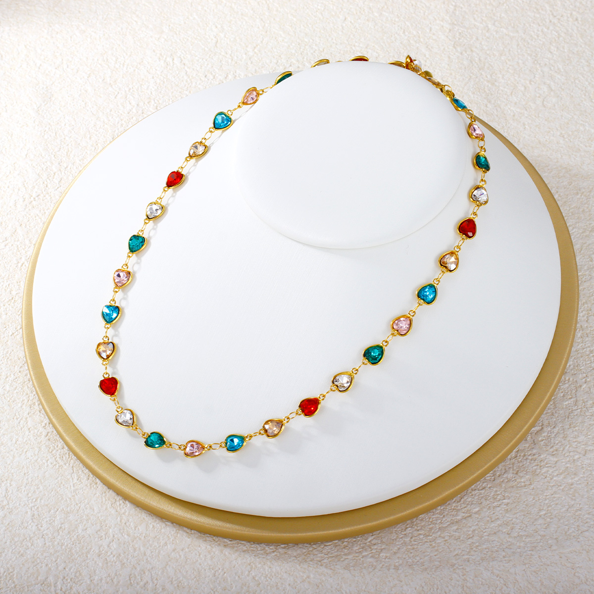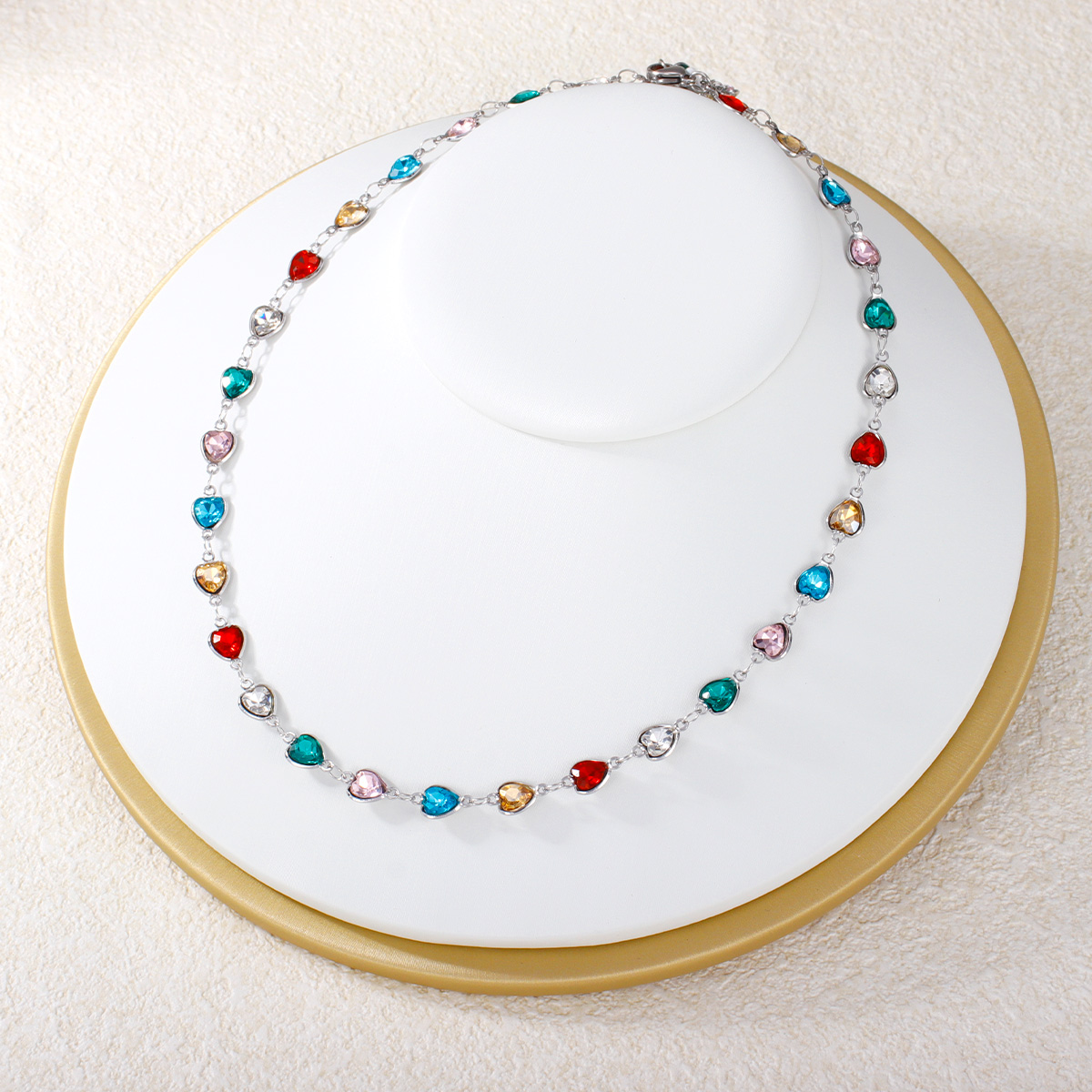 "心形圆形水滴形彩色锆石不锈钢项链"