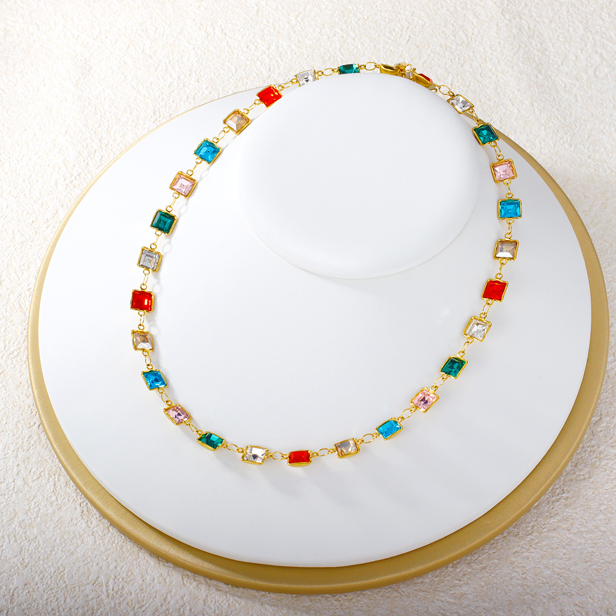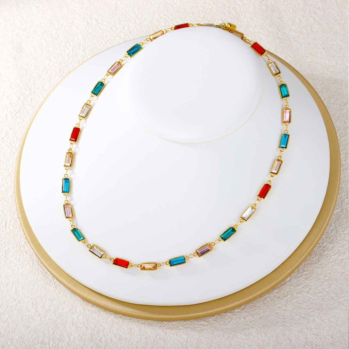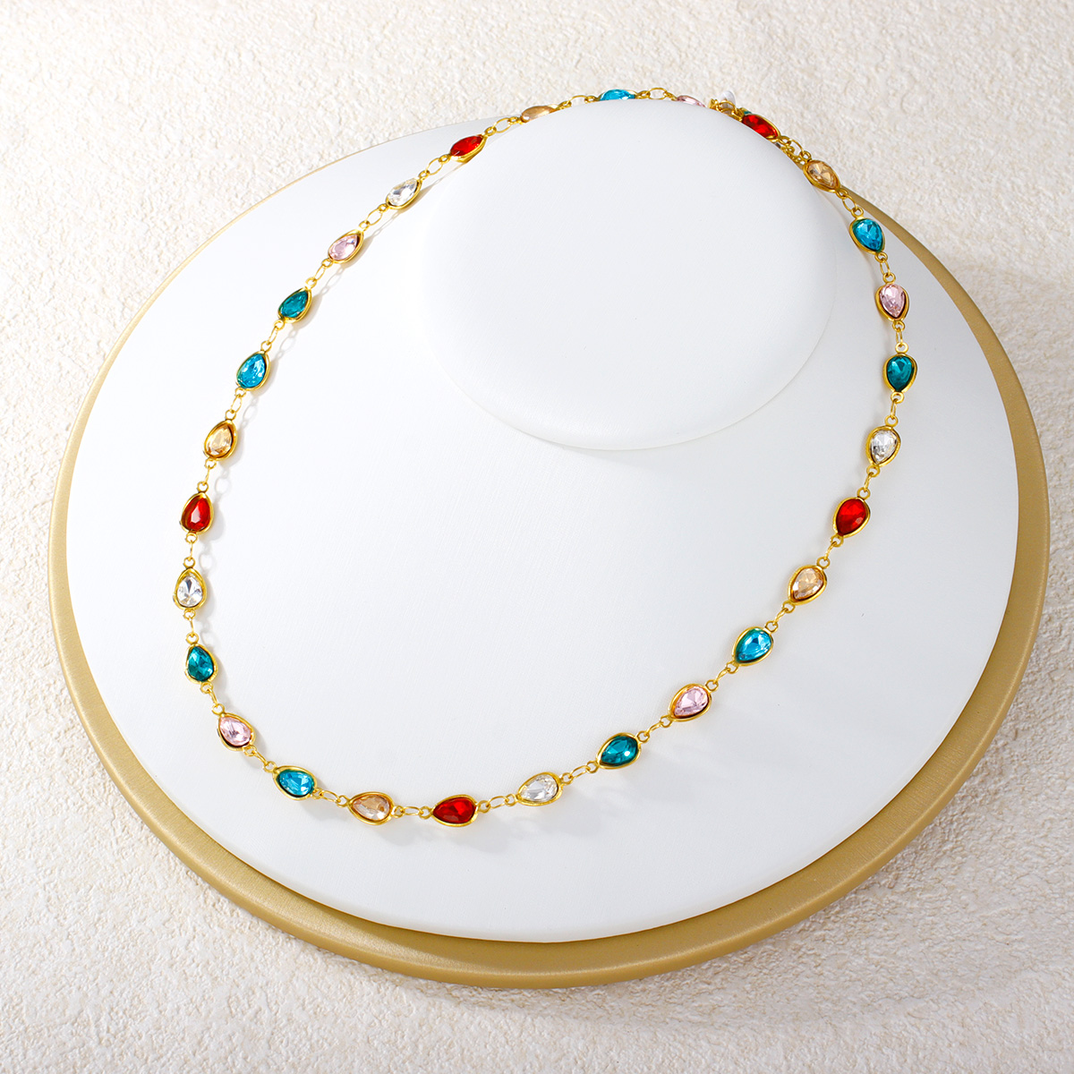 心形圆形水滴形彩色锆石不锈钢项链