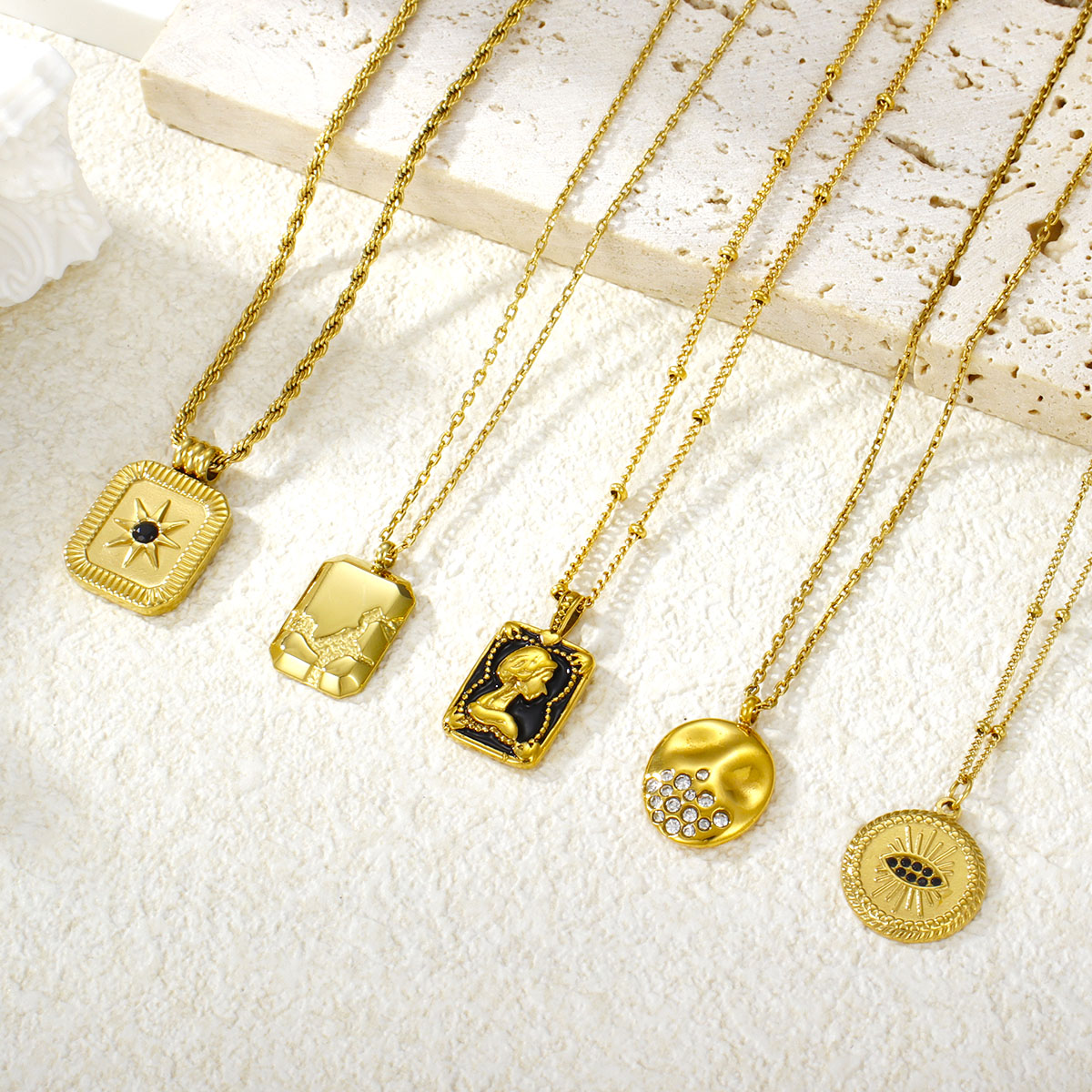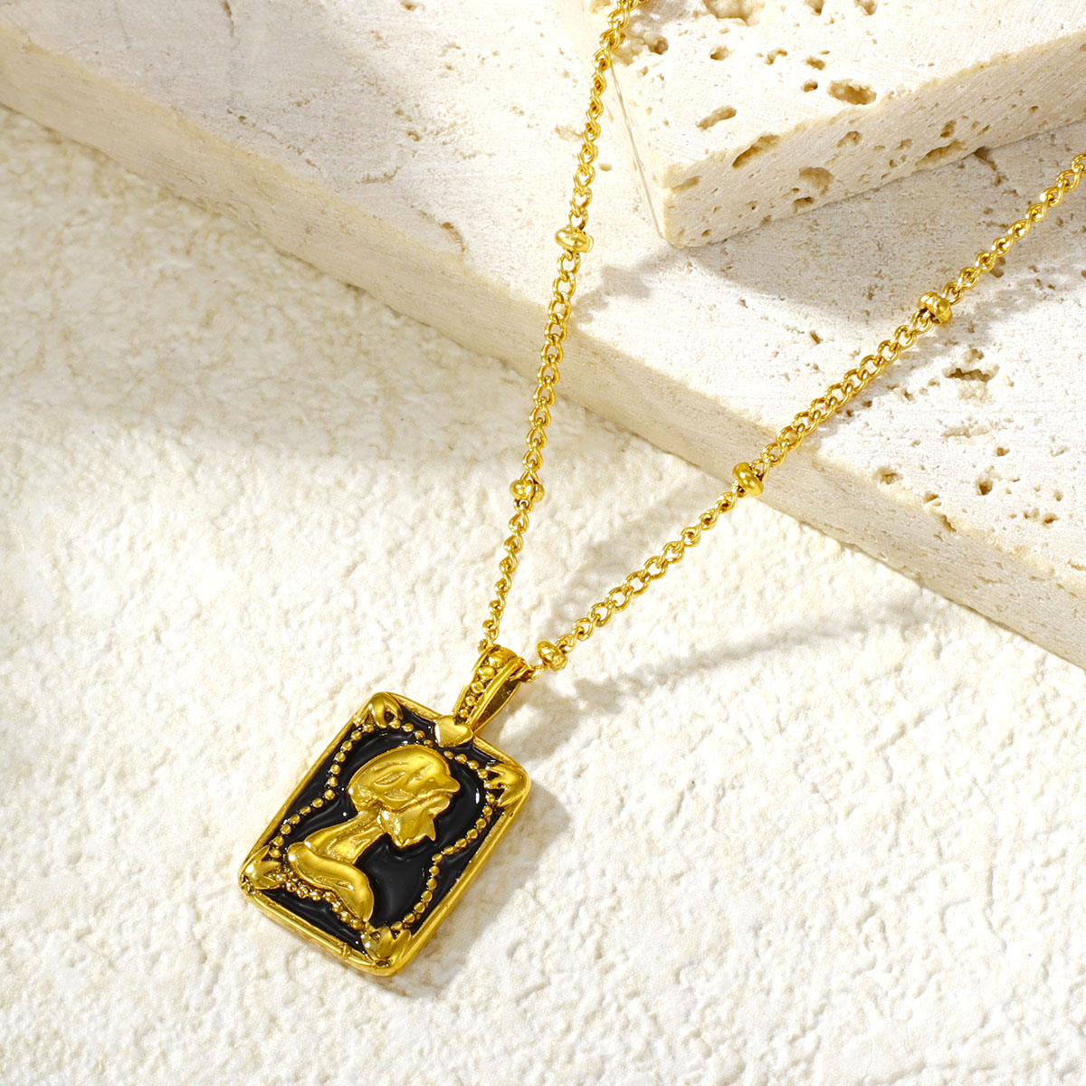 复古18k镀金不锈钢链女王浮雕吊坠