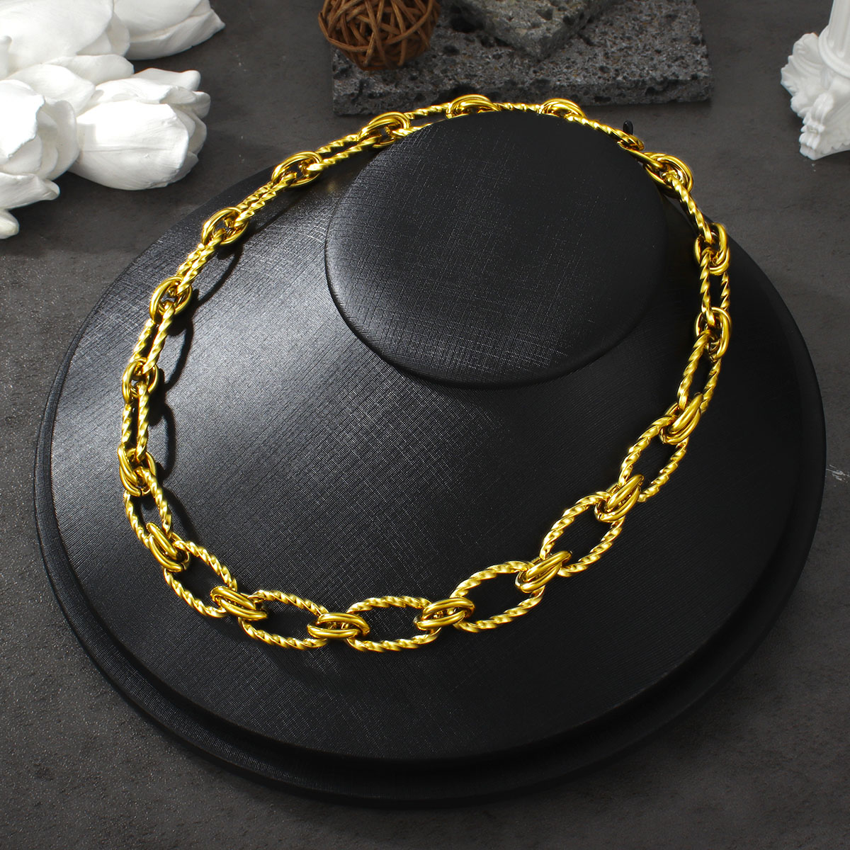 "古巴链不锈钢真空镀18k大号粗链项链"