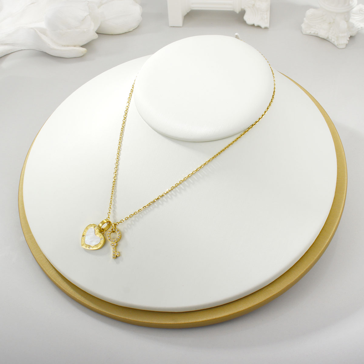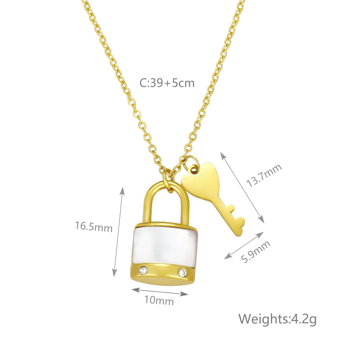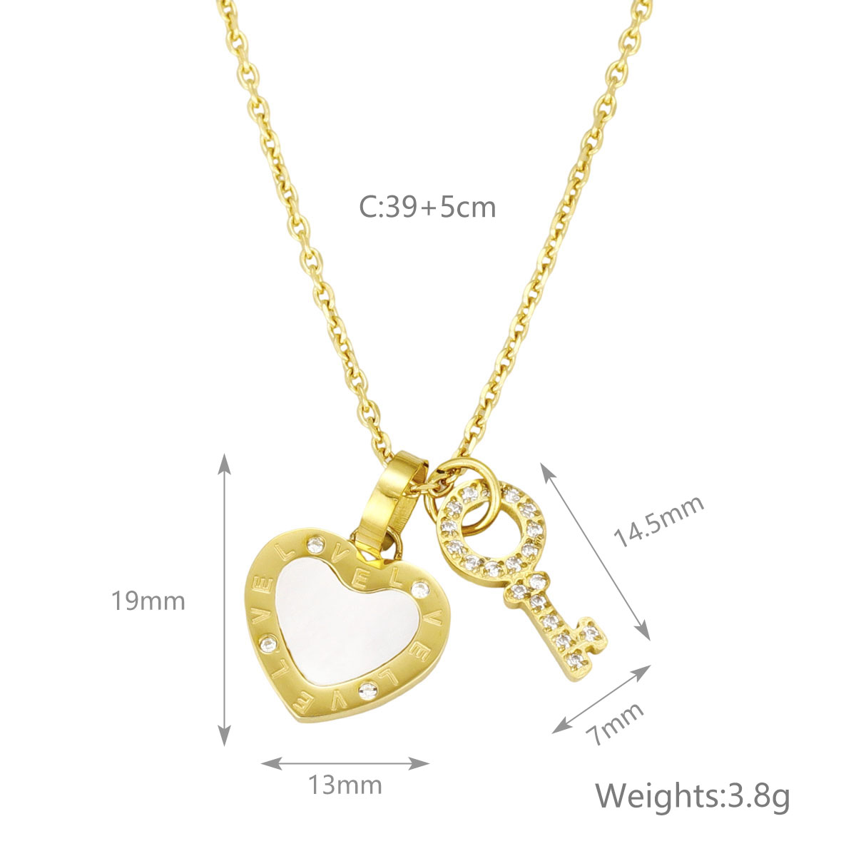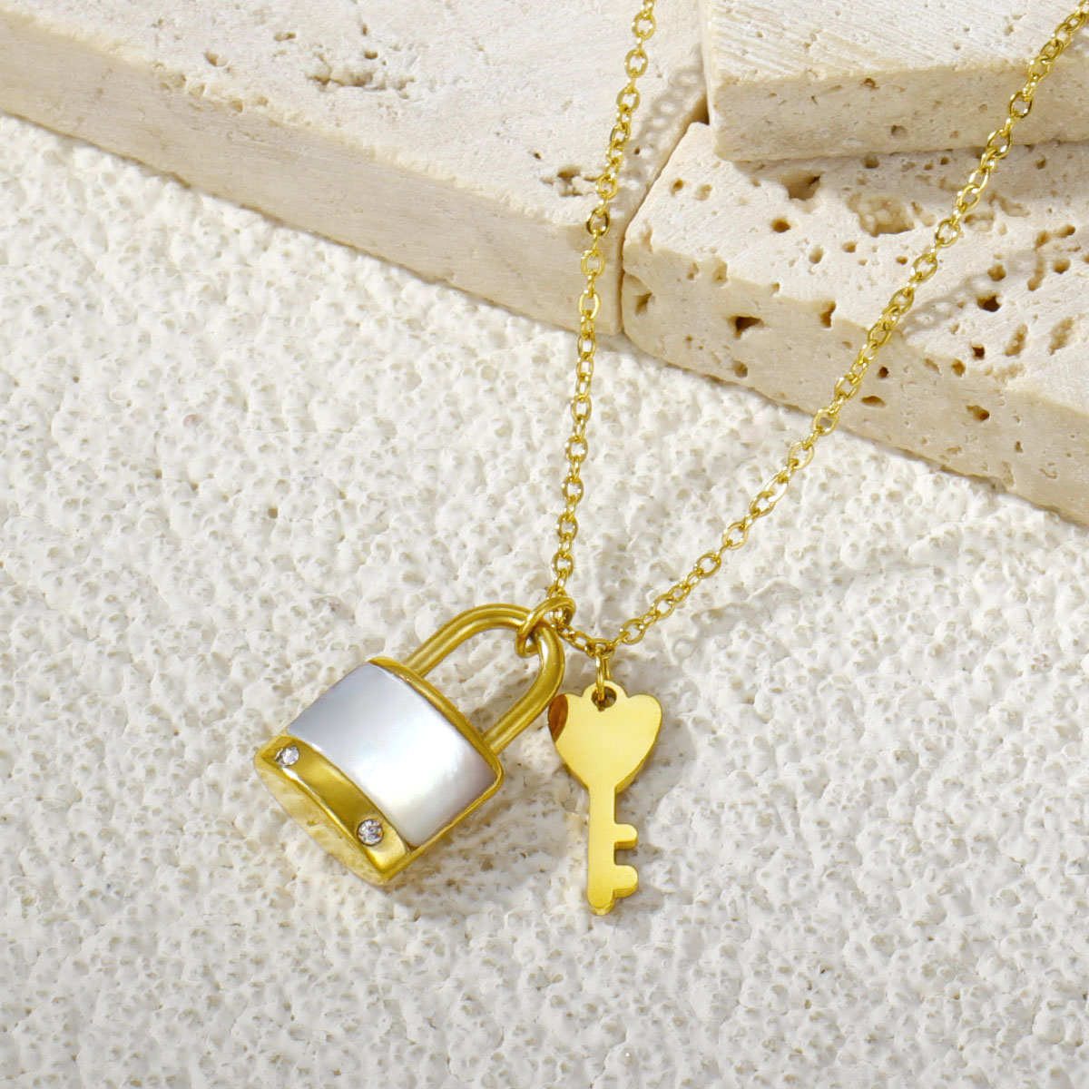 "不锈钢锁骨链项链镶满钻石的贝壳钥匙吊坠"