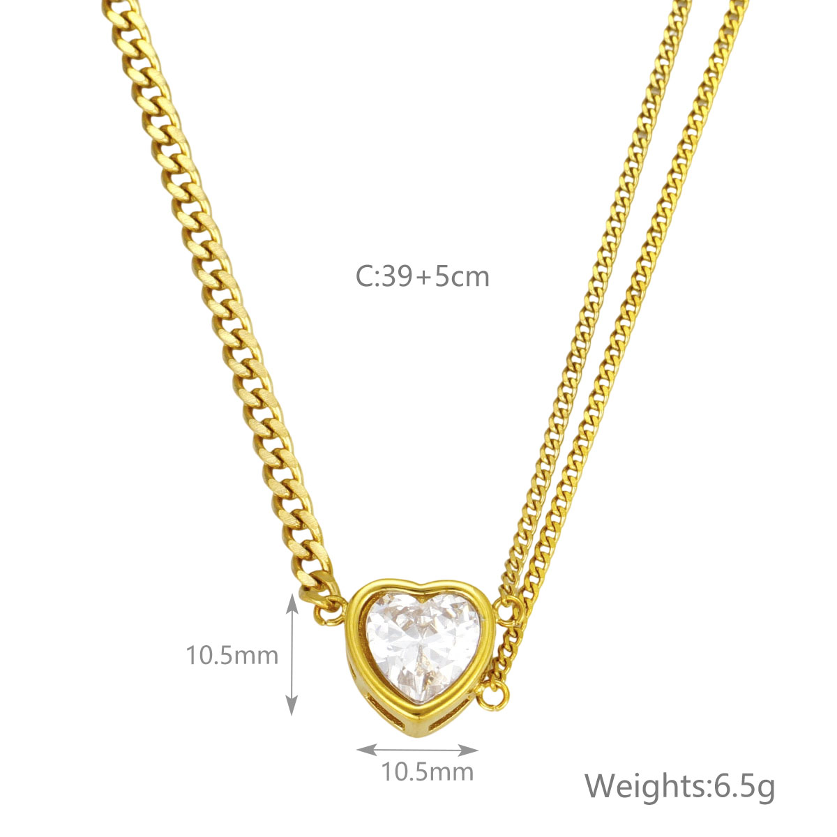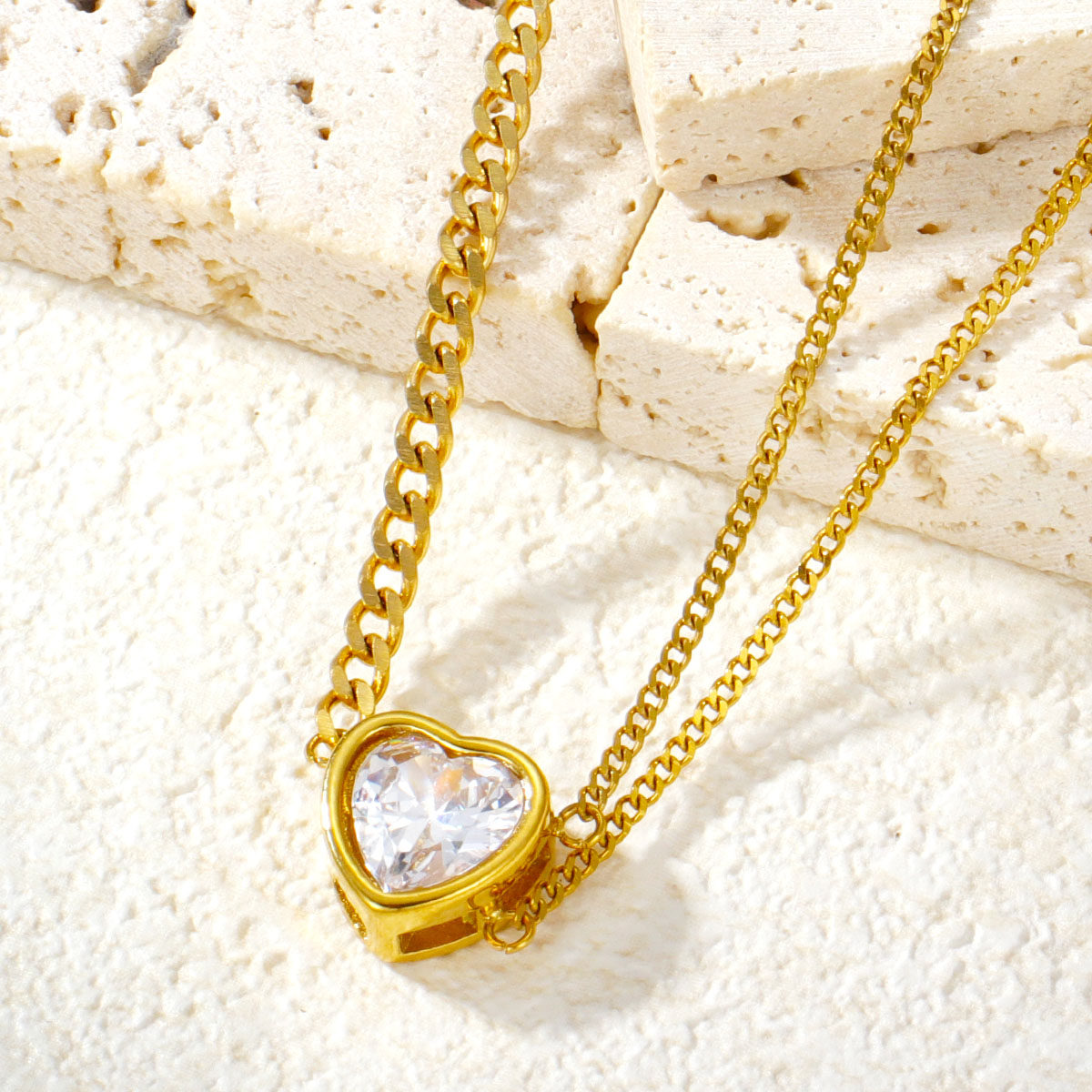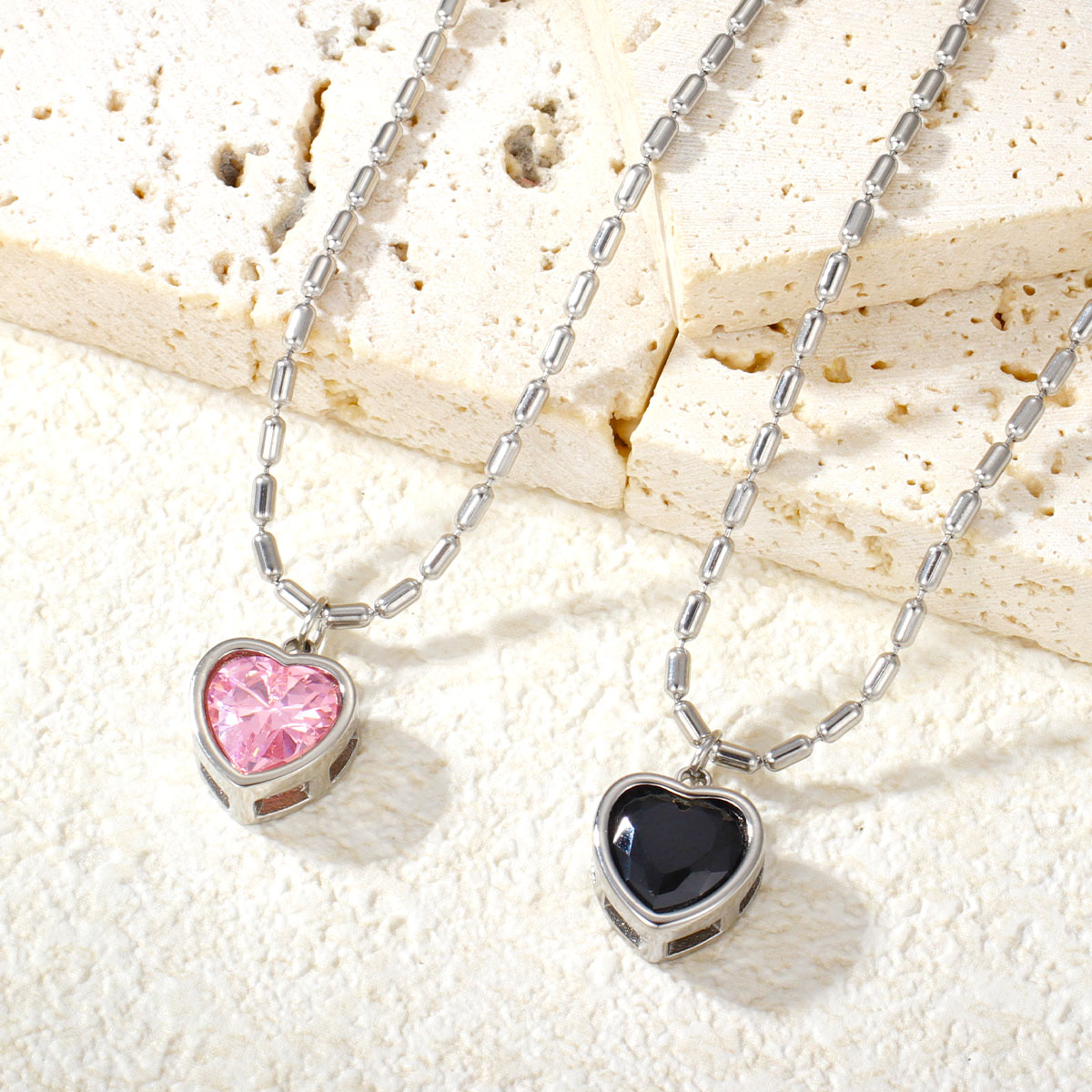 "厂家直销编织桃心项链 镶嵌彩色锆石"