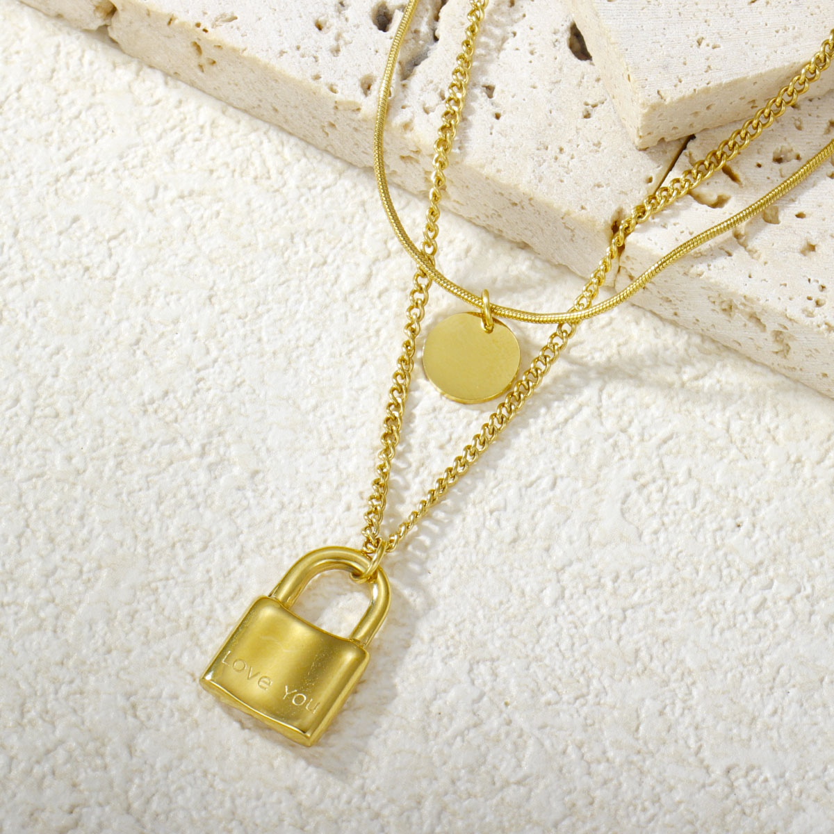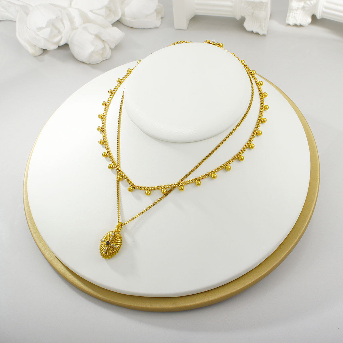 极简几何椭圆珠首饰套装项链不锈钢双层项链