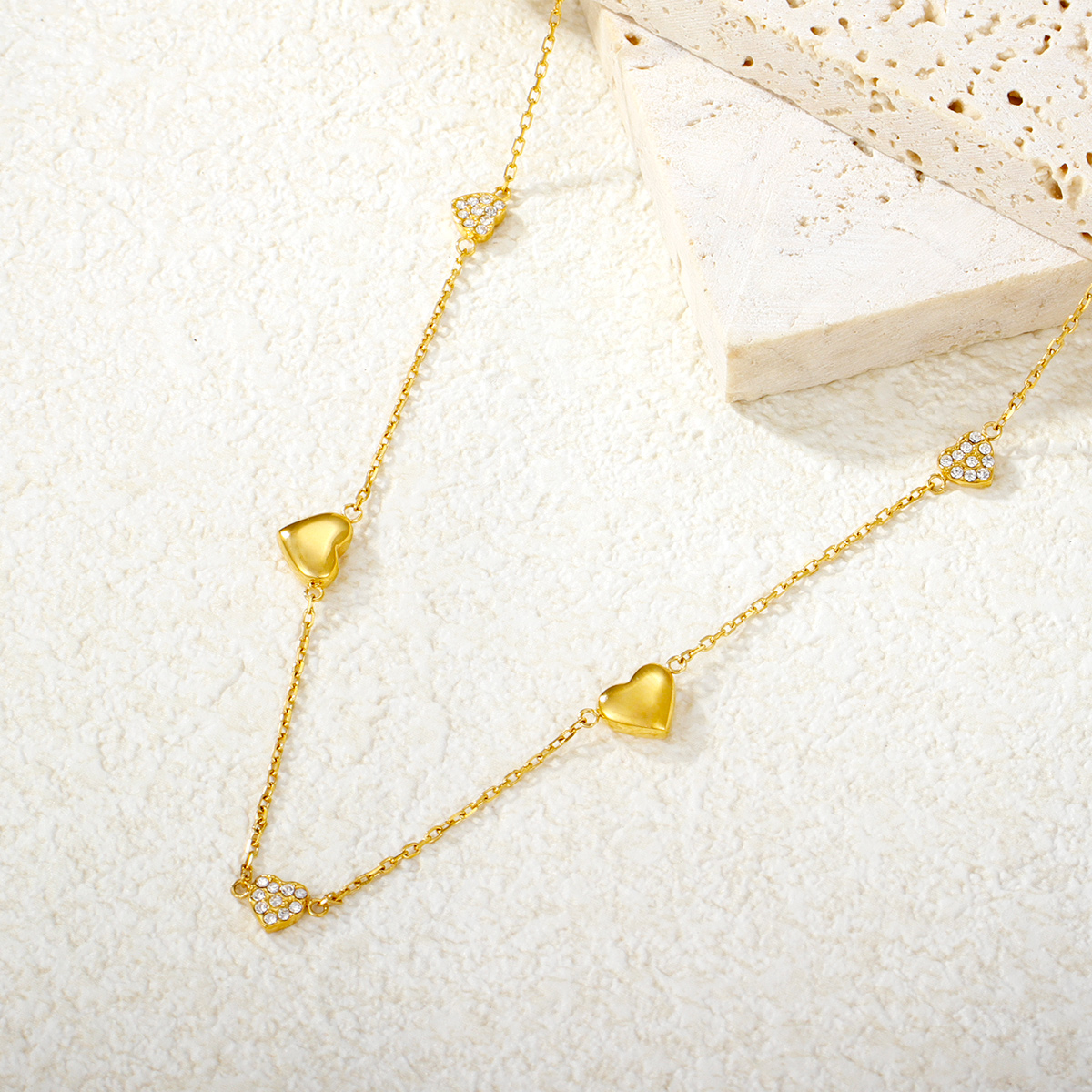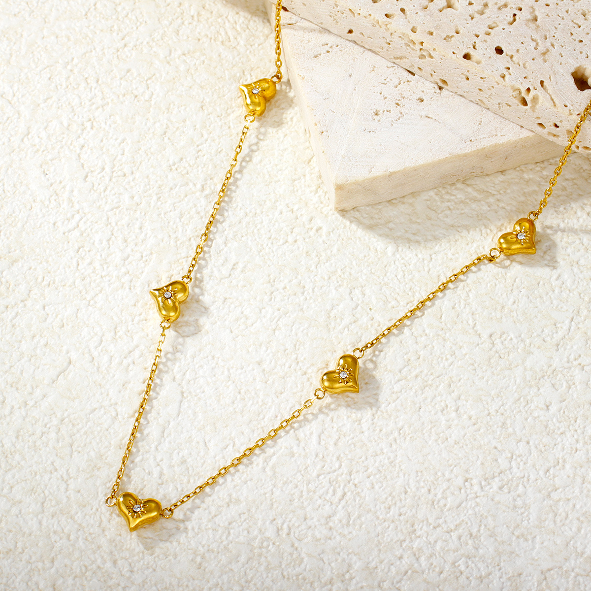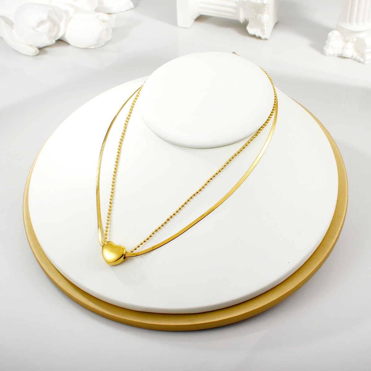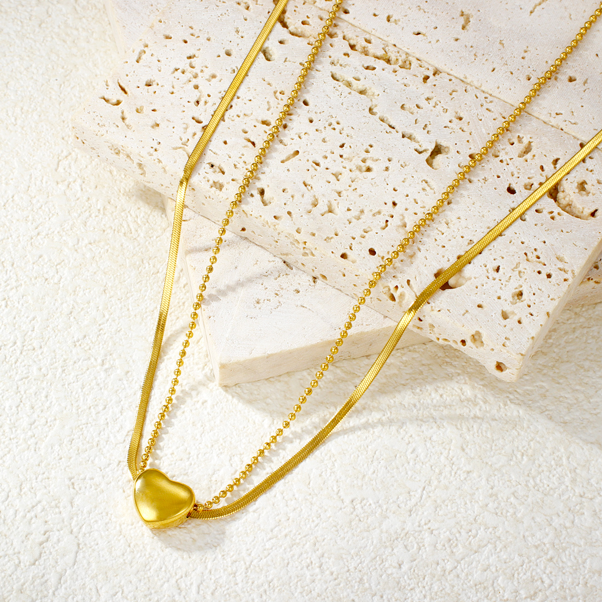 "防褪色18K镀金永恒之爱项链不锈钢心形吊坠 "