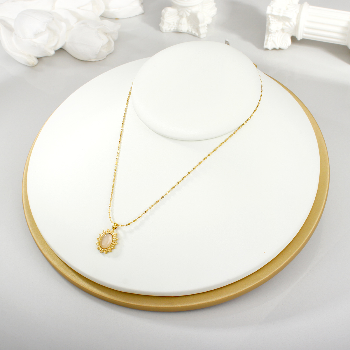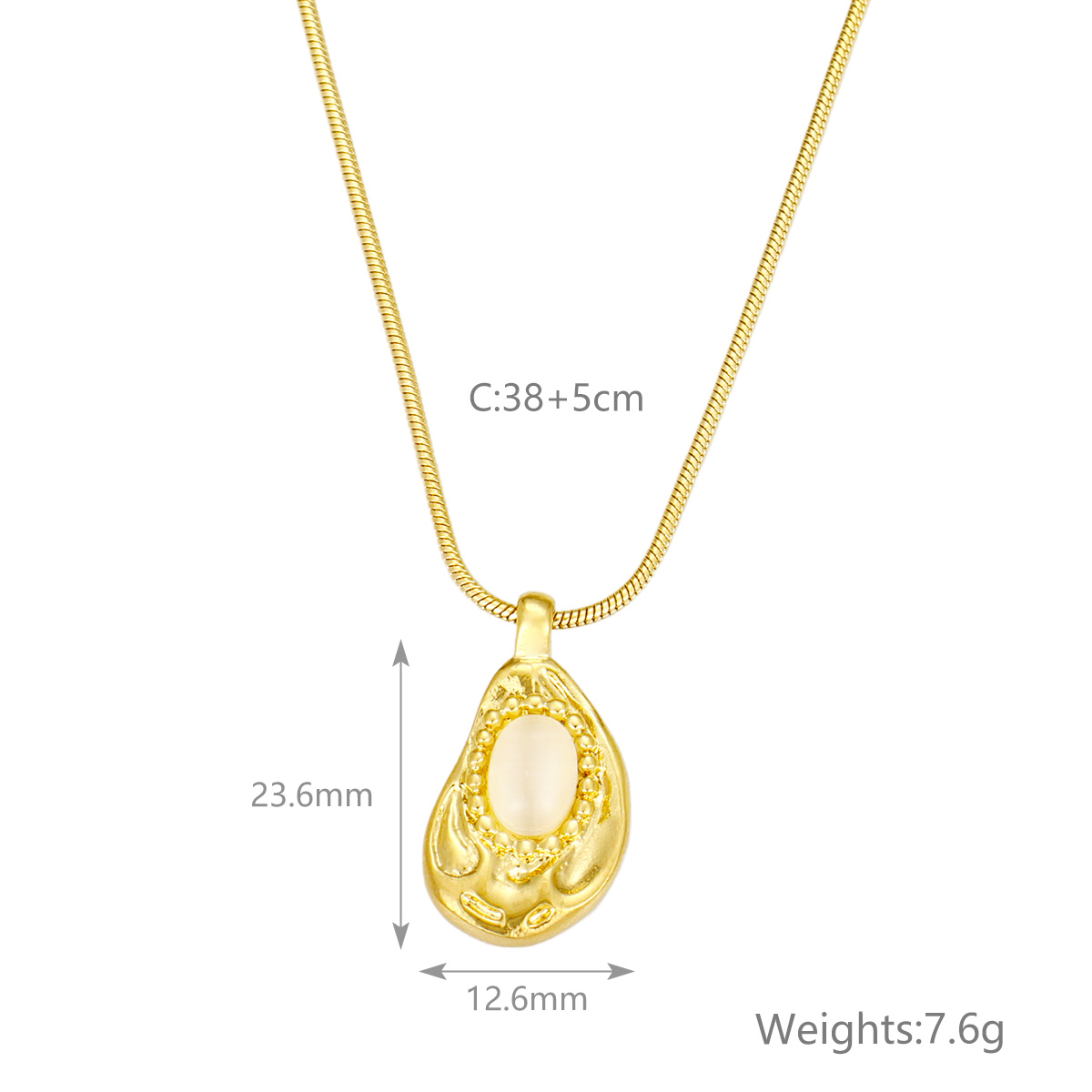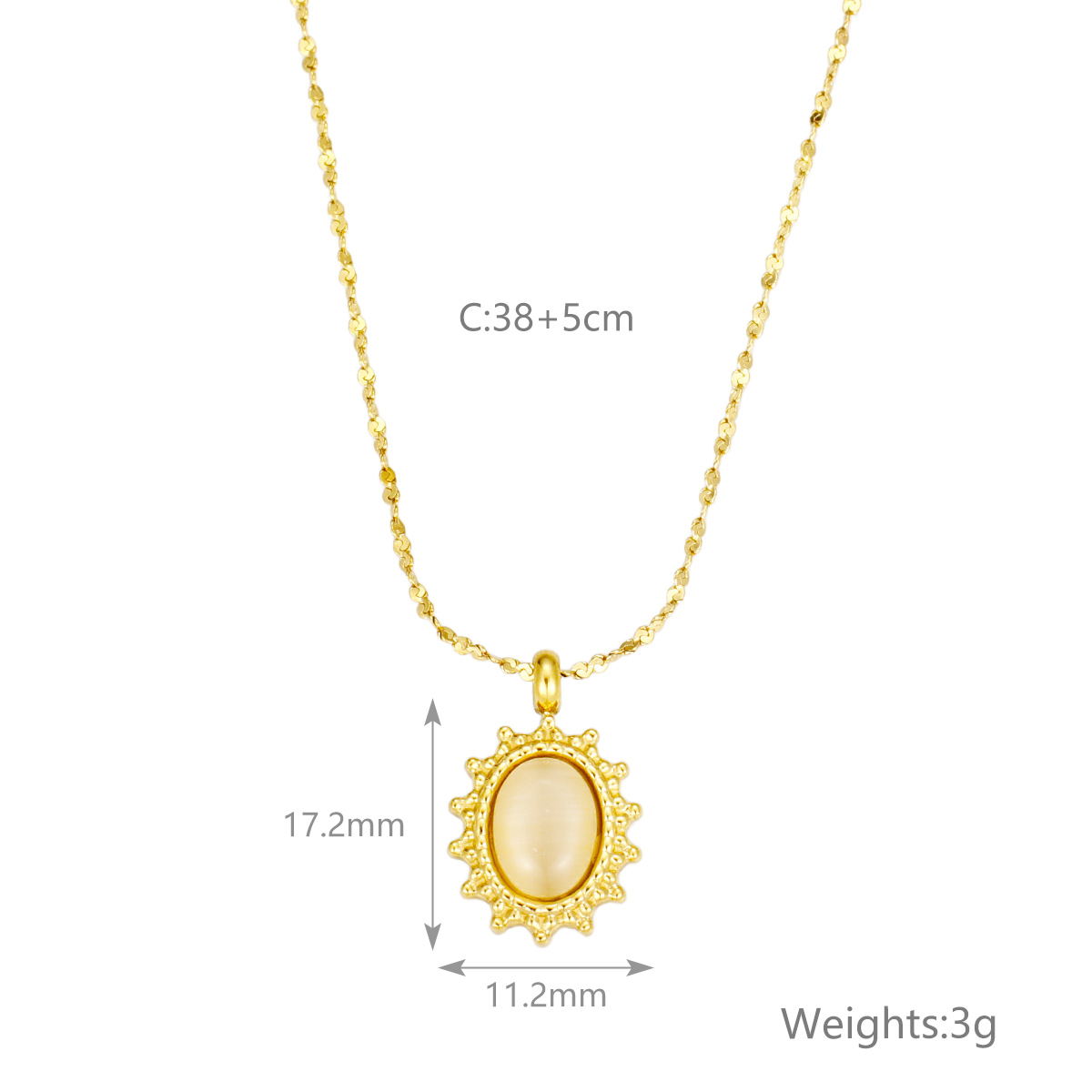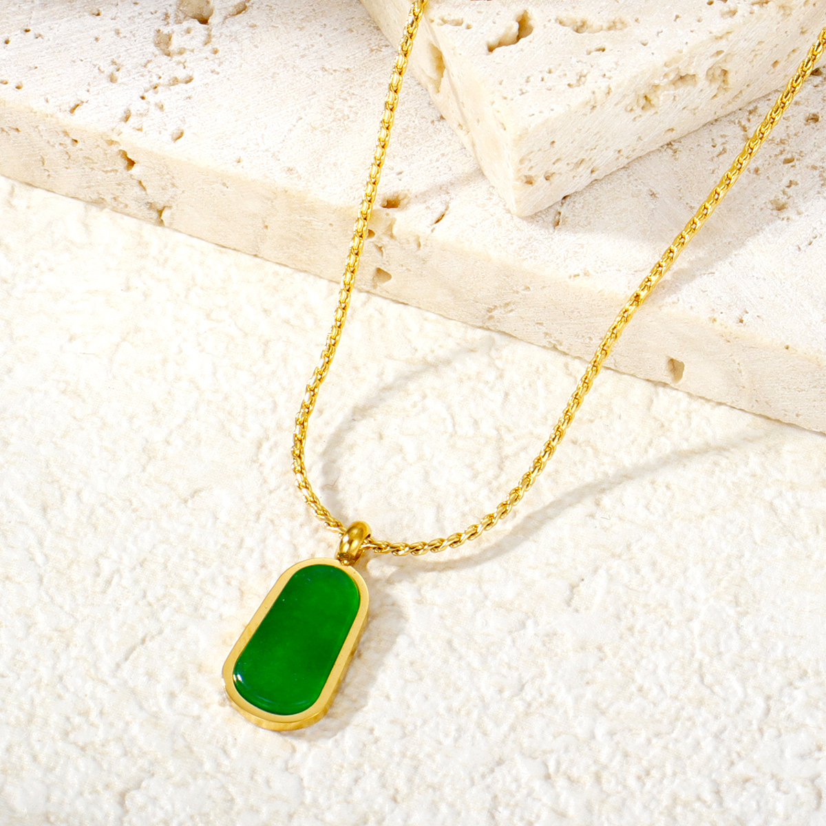时尚18K镀金不锈钢细链椭圆形绿蓝色天然石吊坠项链