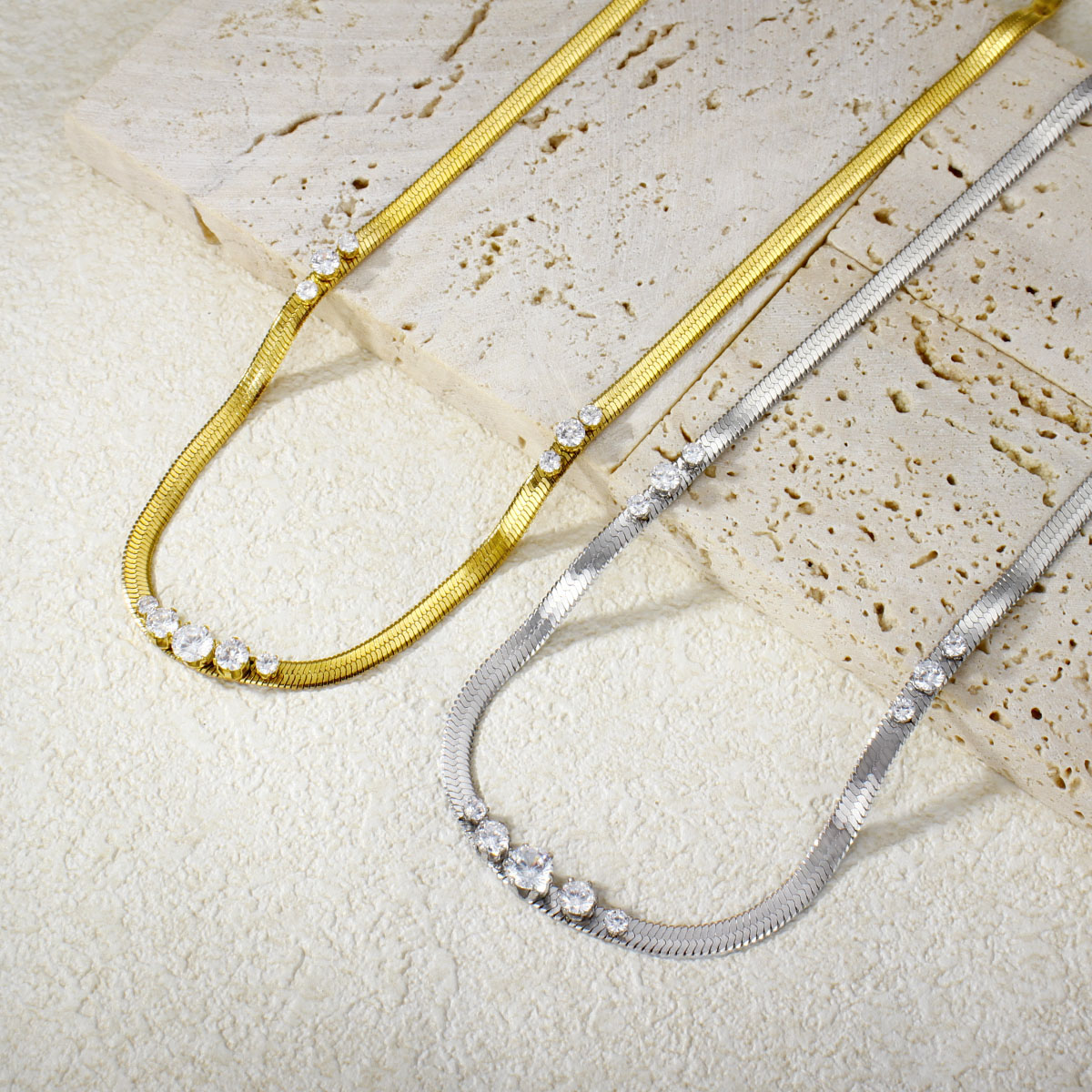 18K镀金PVD不锈钢链条拼接项链,防水太阳雏菊花朵