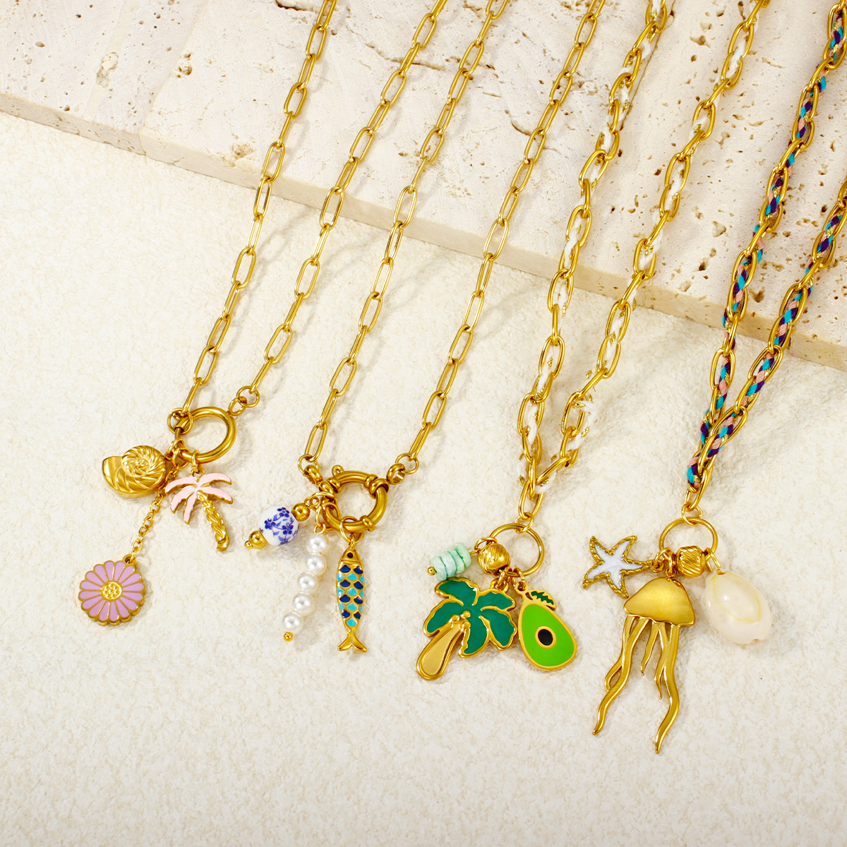 潮流批发海洋系列吊坠 18K 镀金不锈钢项链