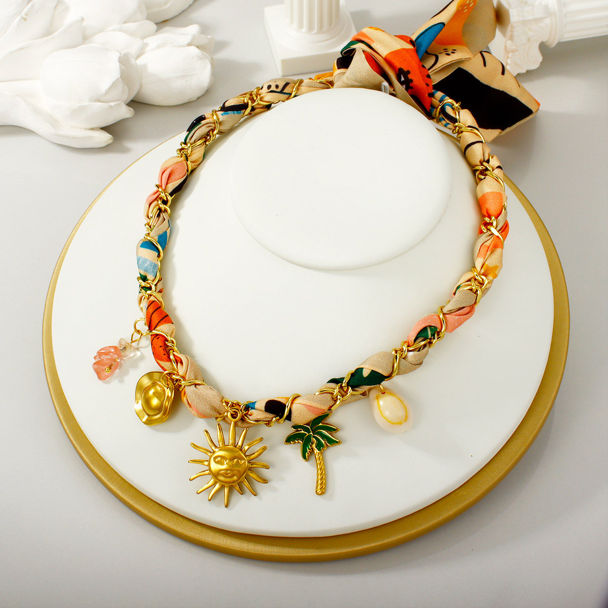 "不锈钢防过敏多色打结围巾项链"
