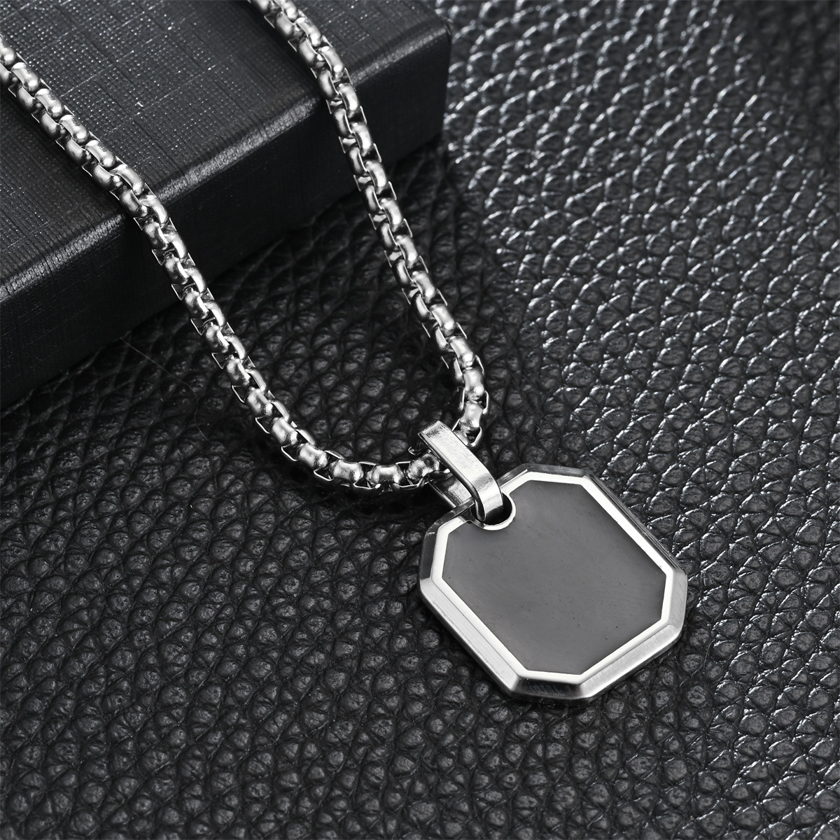 "18K镀金不锈钢男士项链方形珍珠链油滴方形吊坠时"