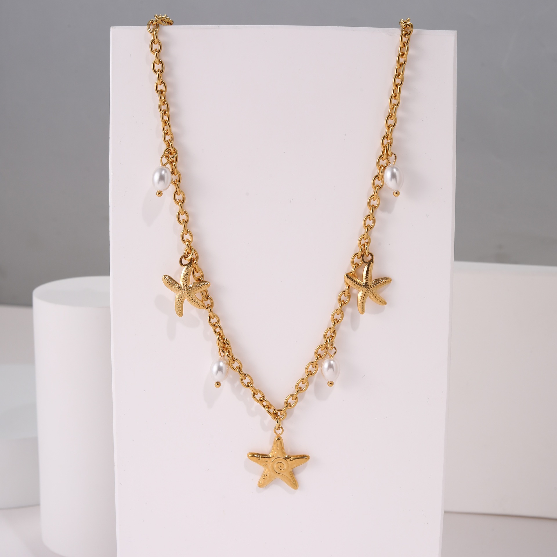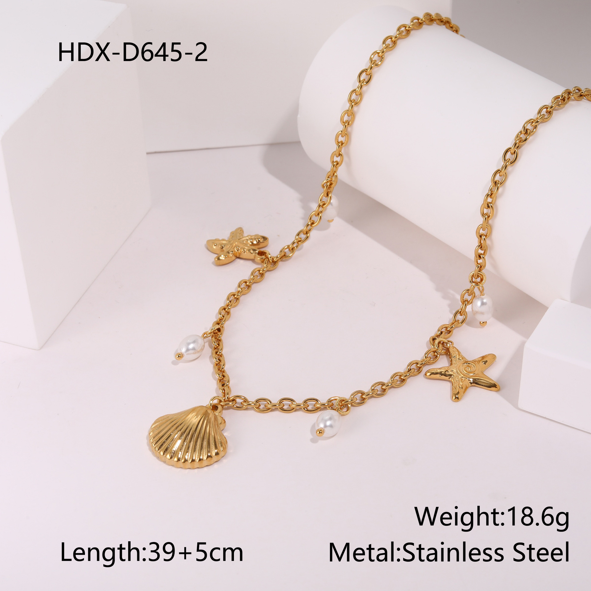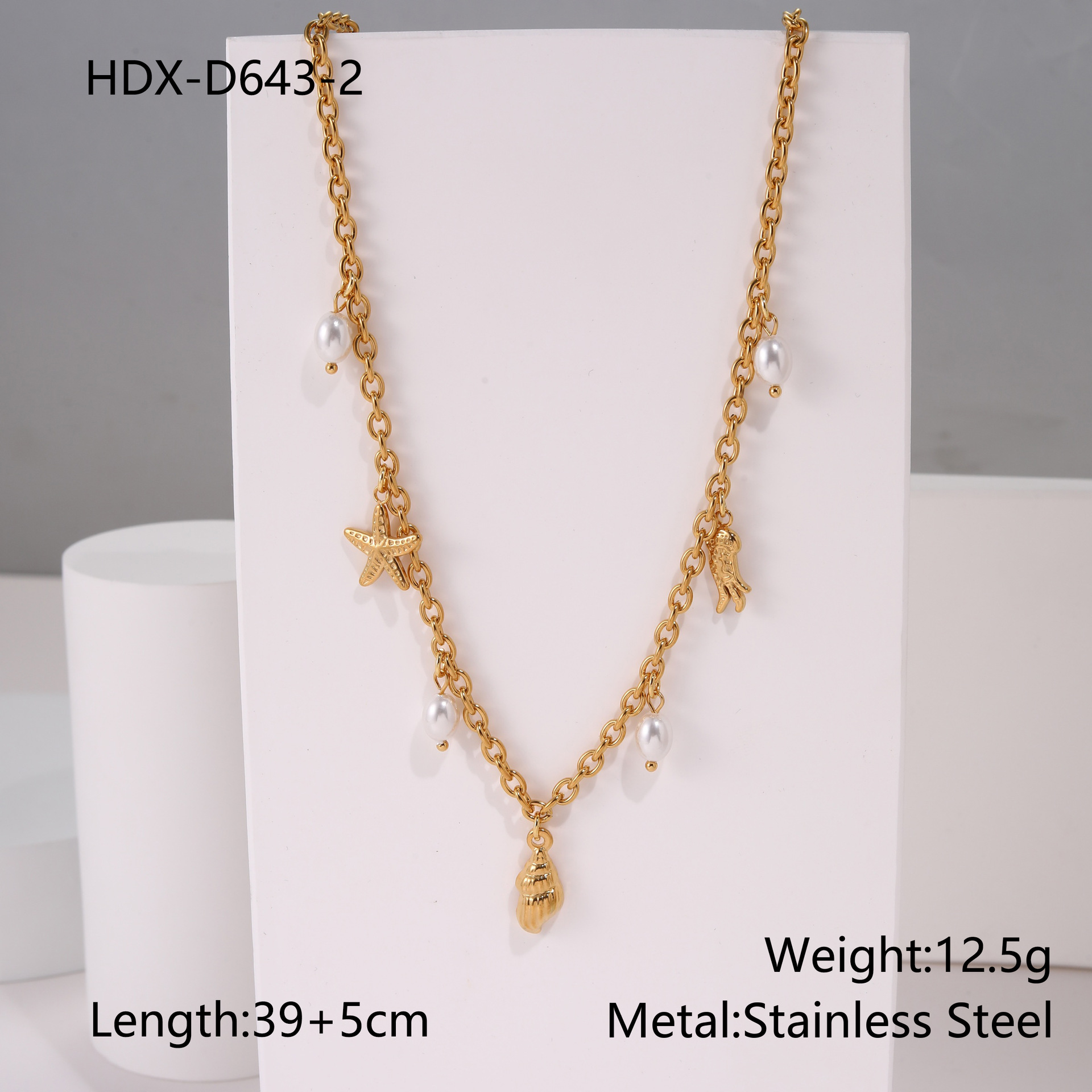 "沙滩防水首饰不锈钢18k镀金海洋生物吊坠项链"
