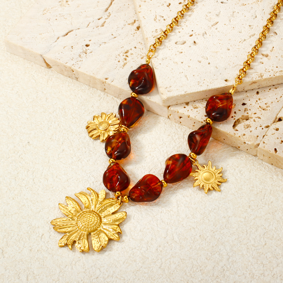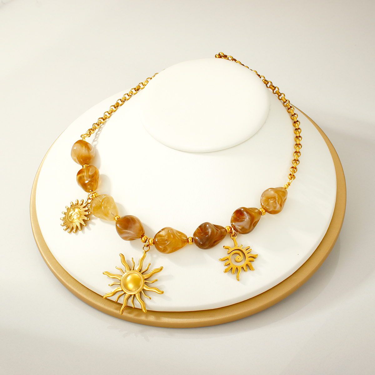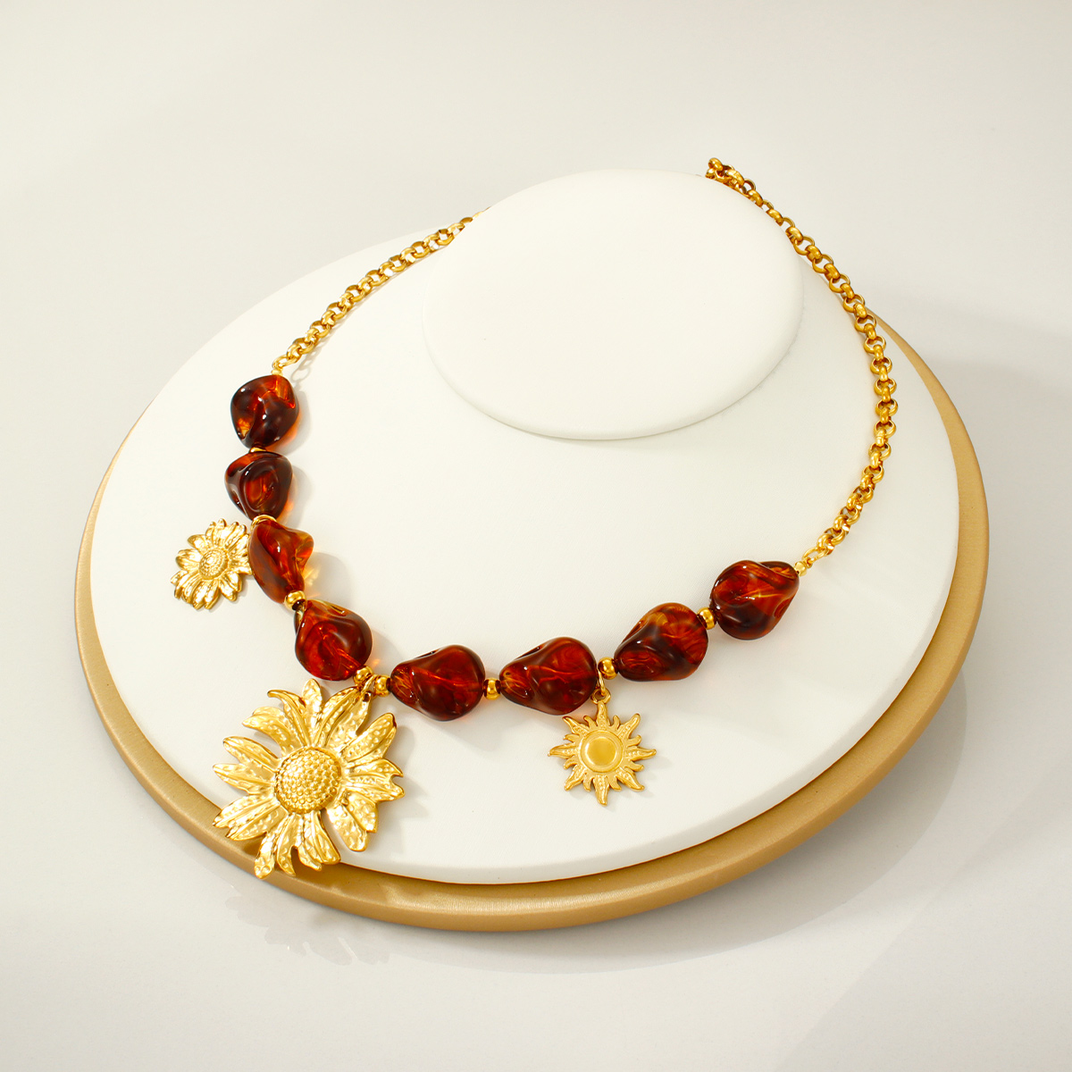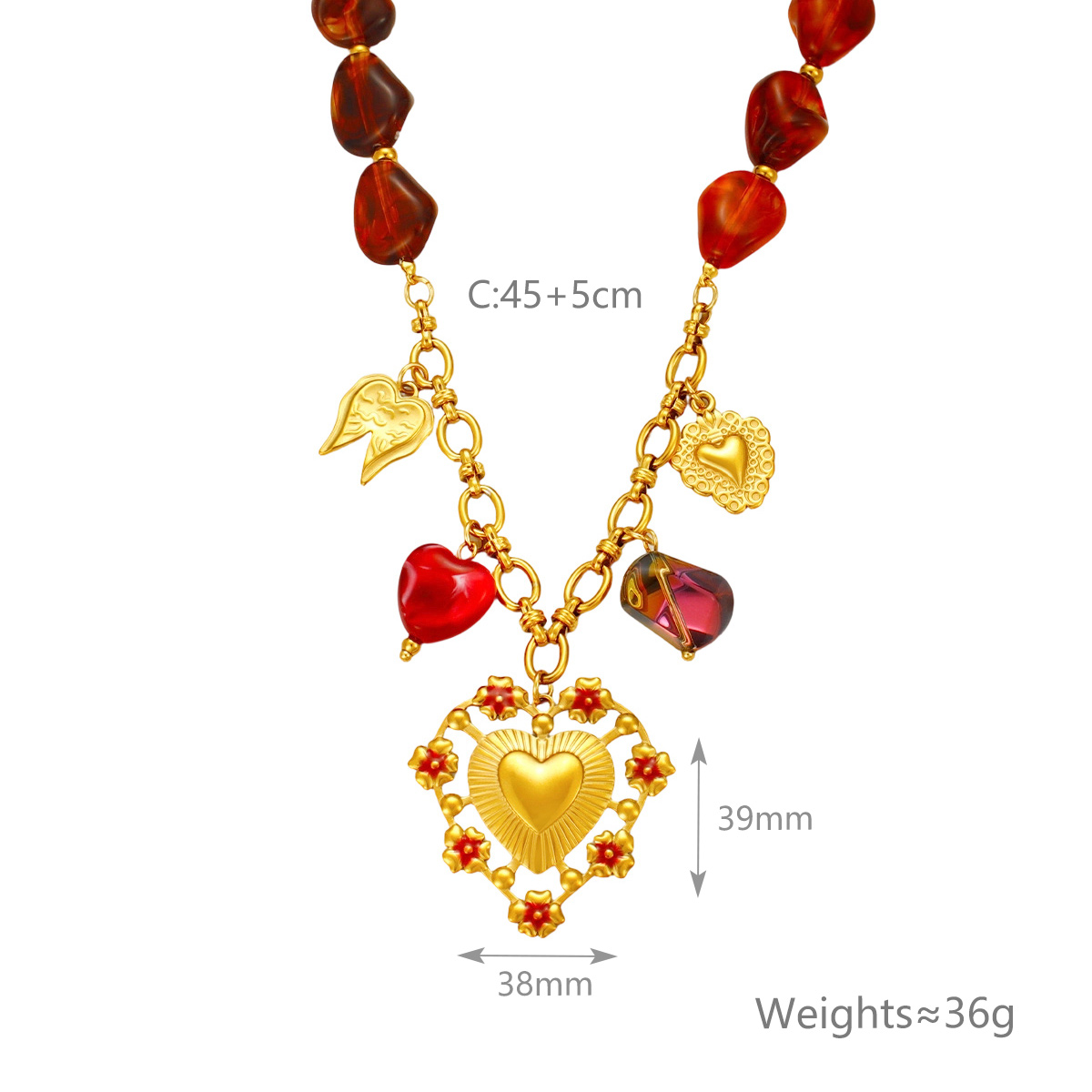 "手工树脂珠项链,18K镀金不锈钢心形吊坠,女士DIY时尚饰品"