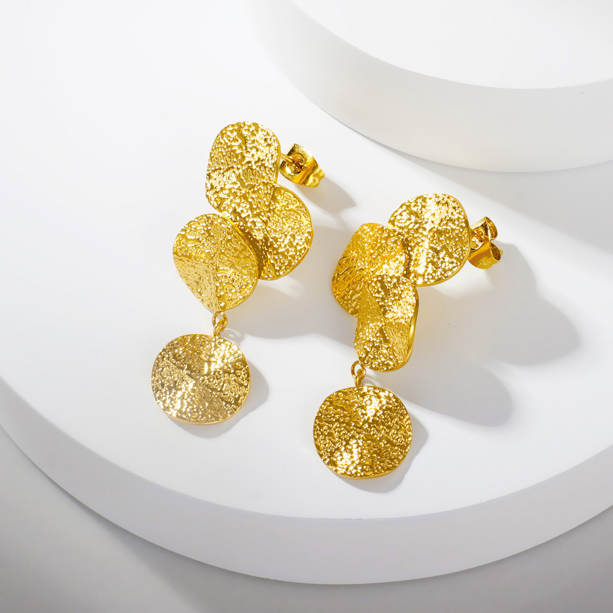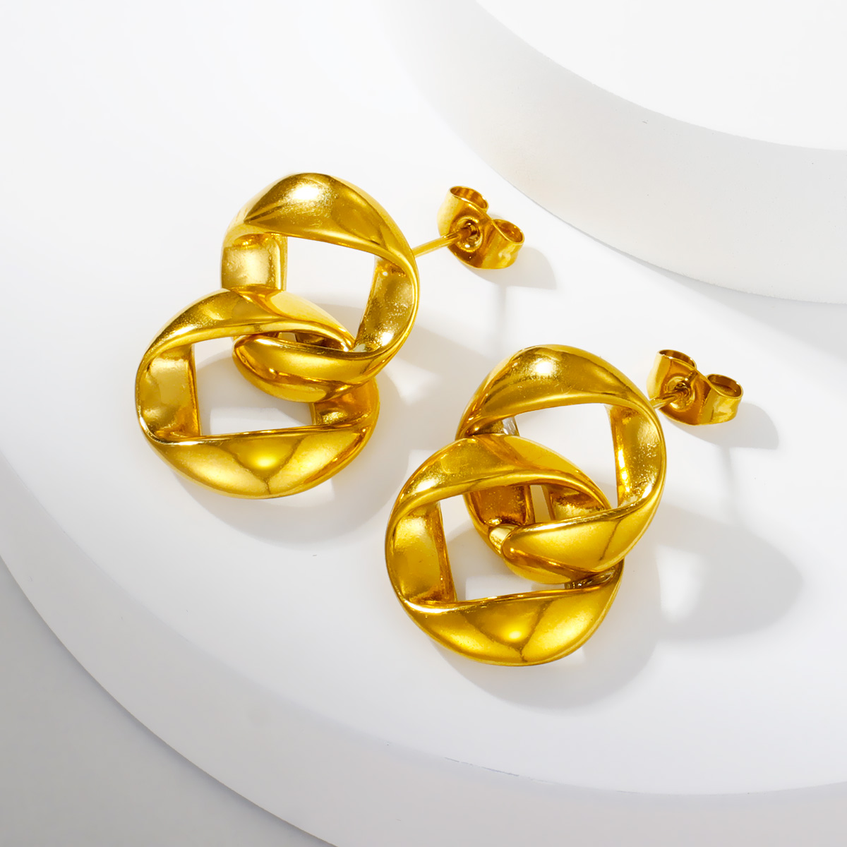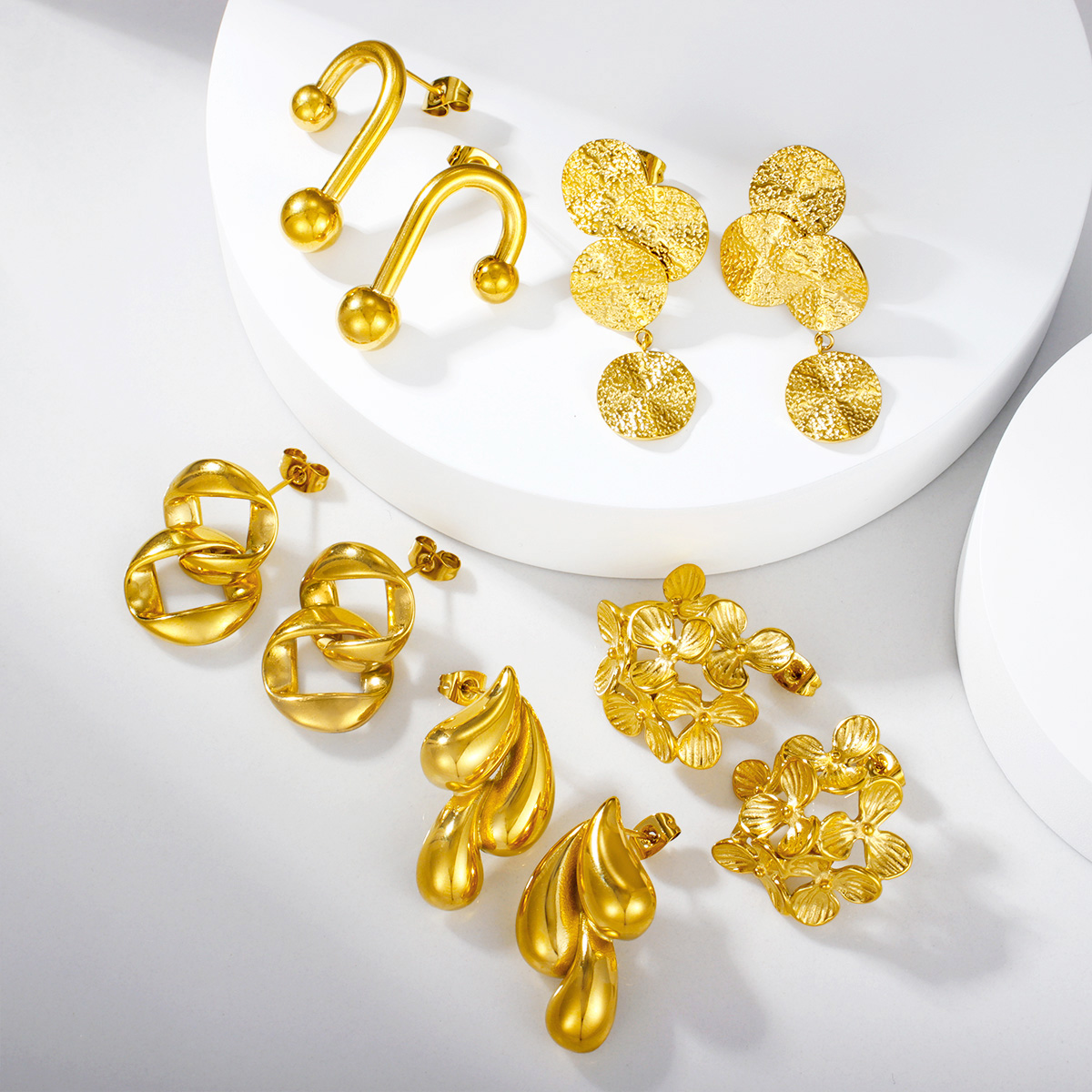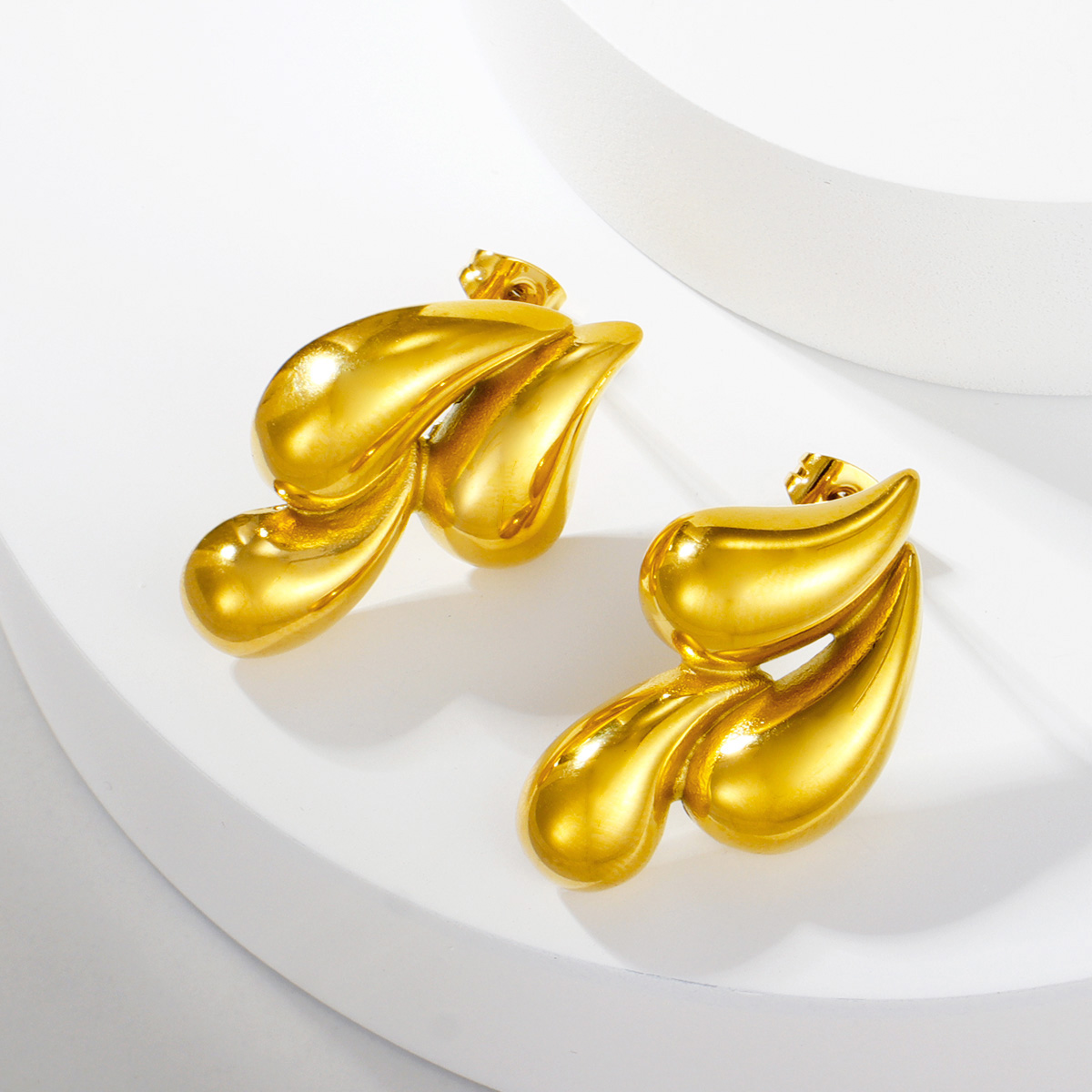"时尚不锈钢水滴简约开口18k镀金耳环"