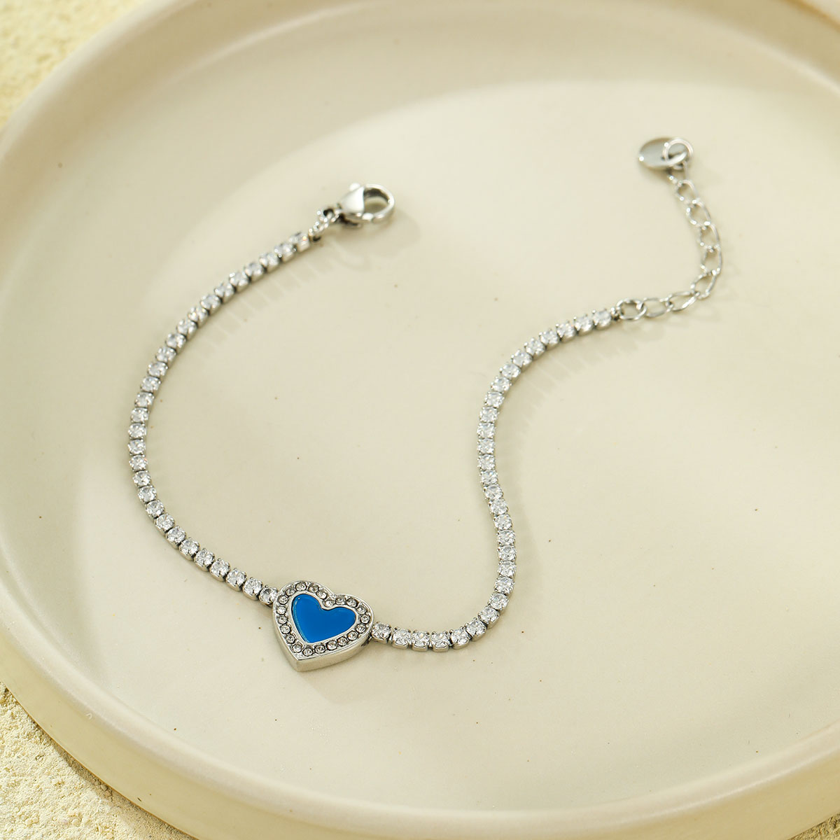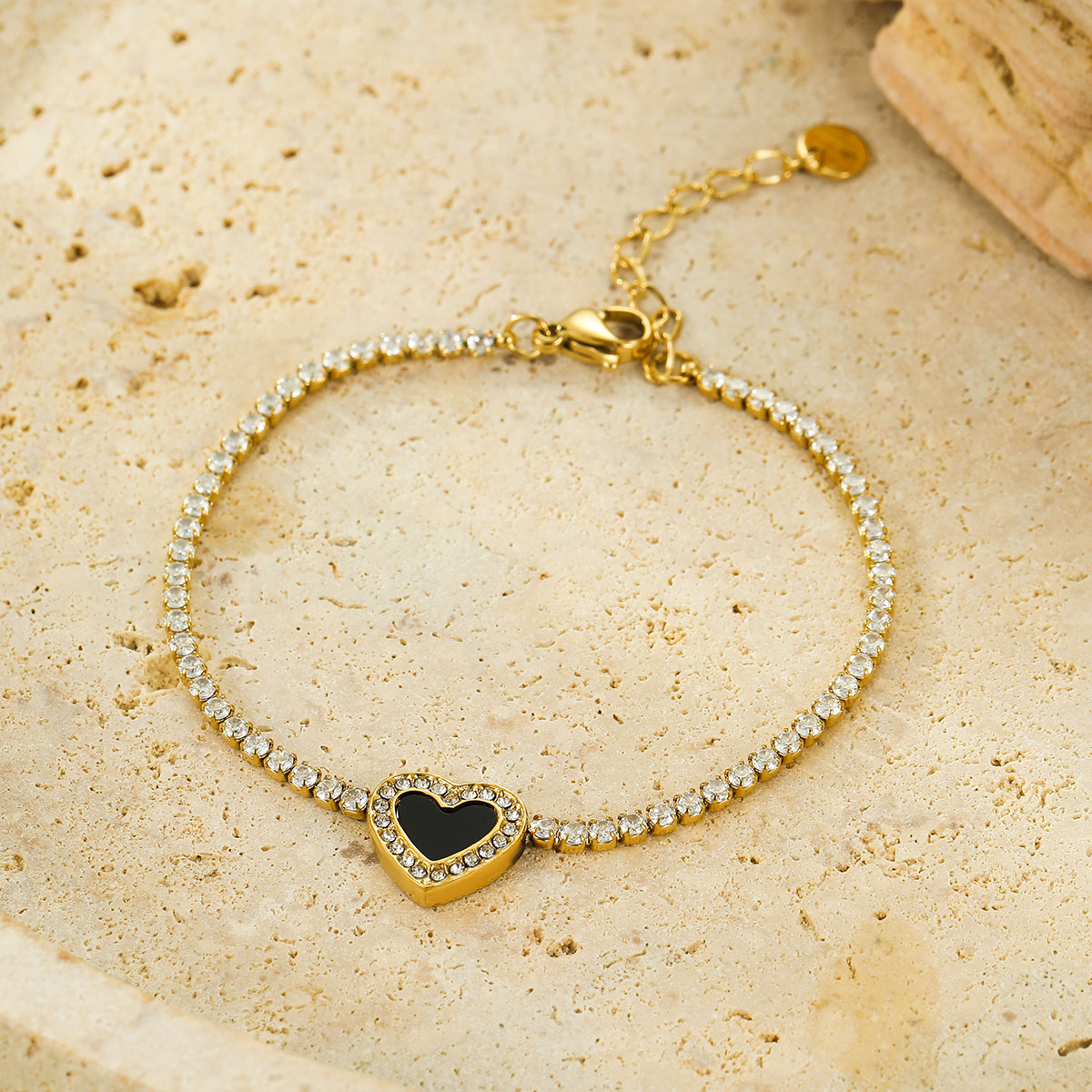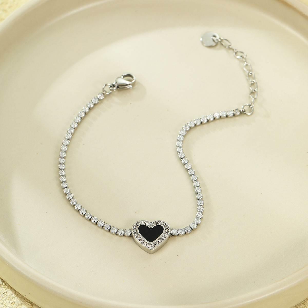 "复古心形钻石网球链手链"