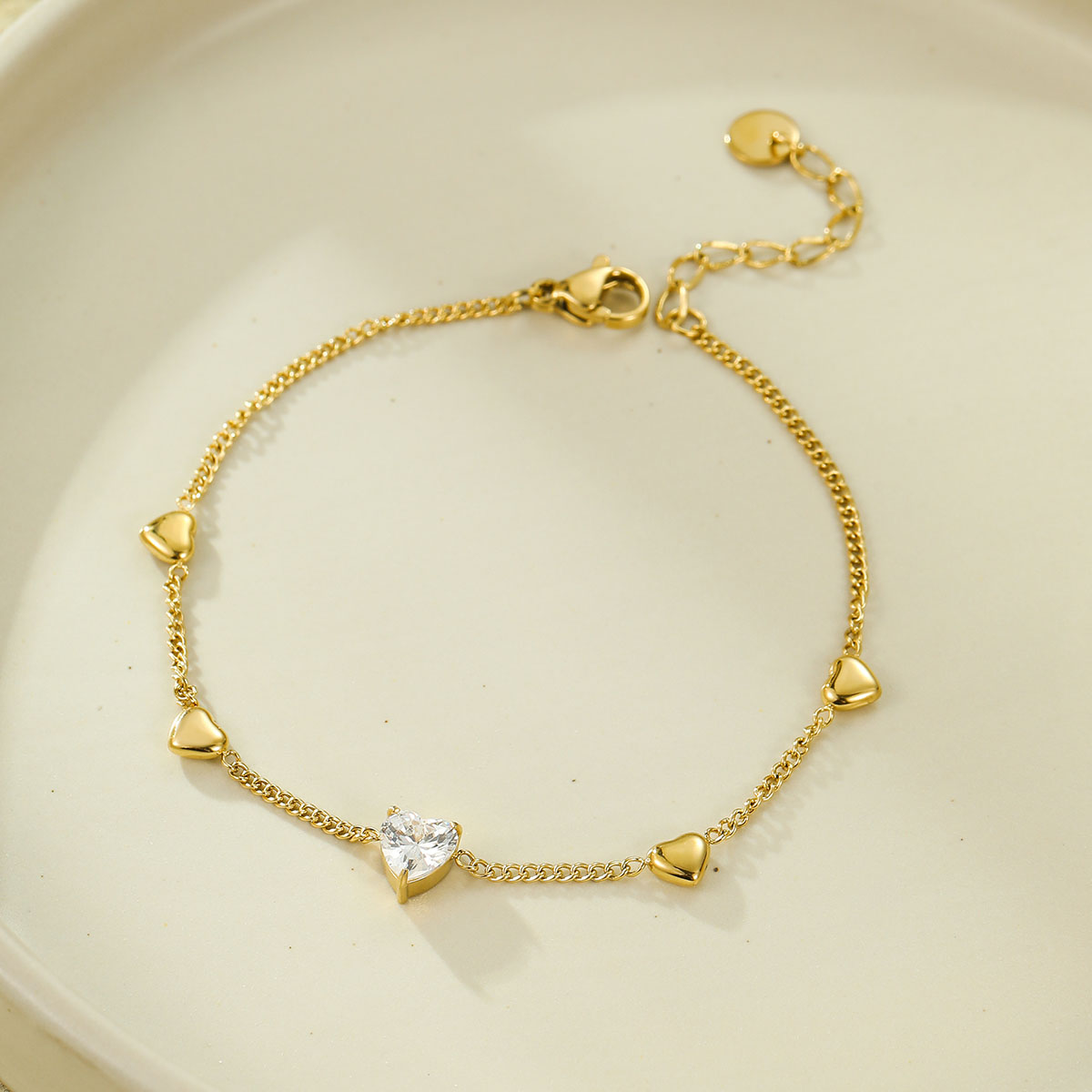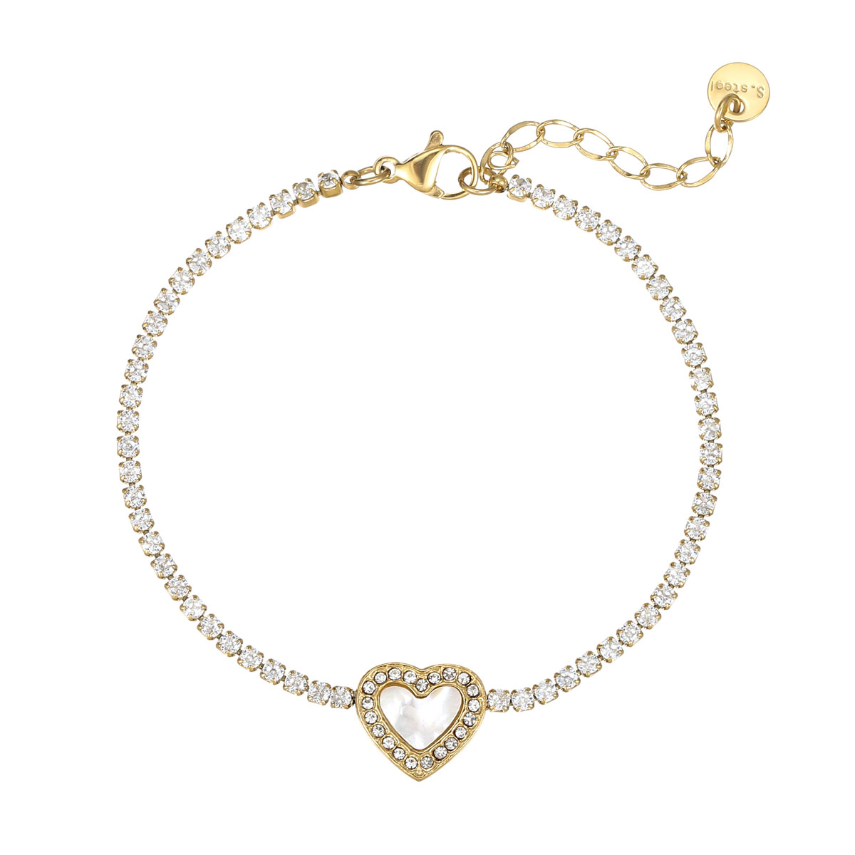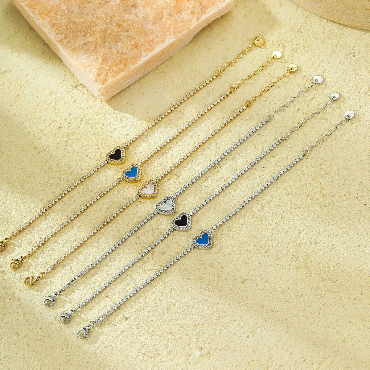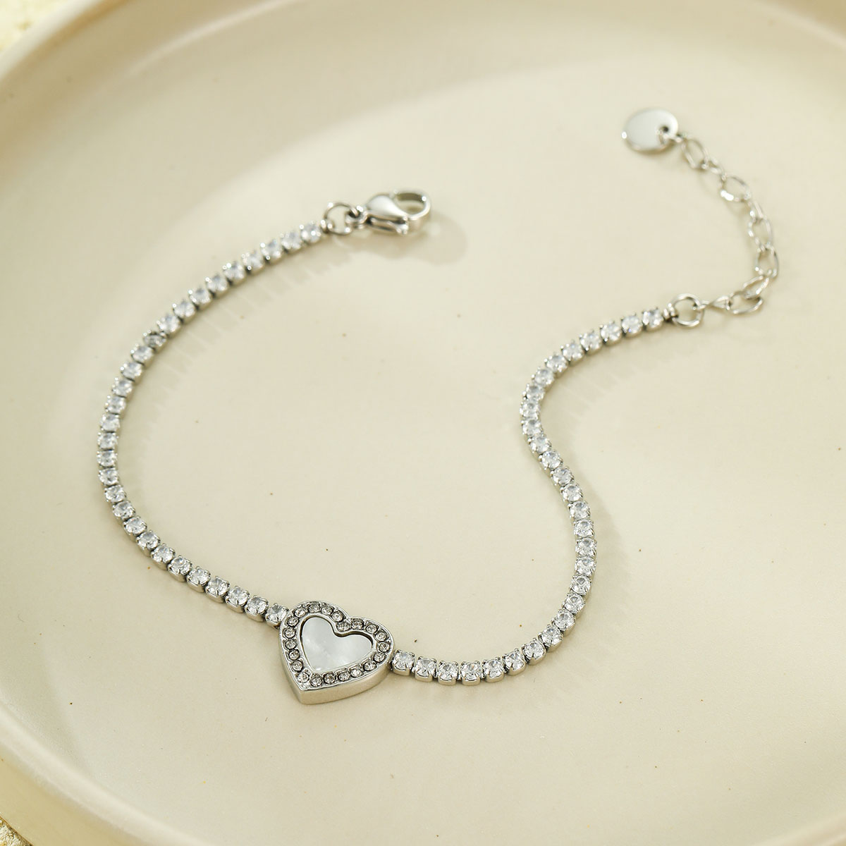 "复古心形钻石网球链手链"
